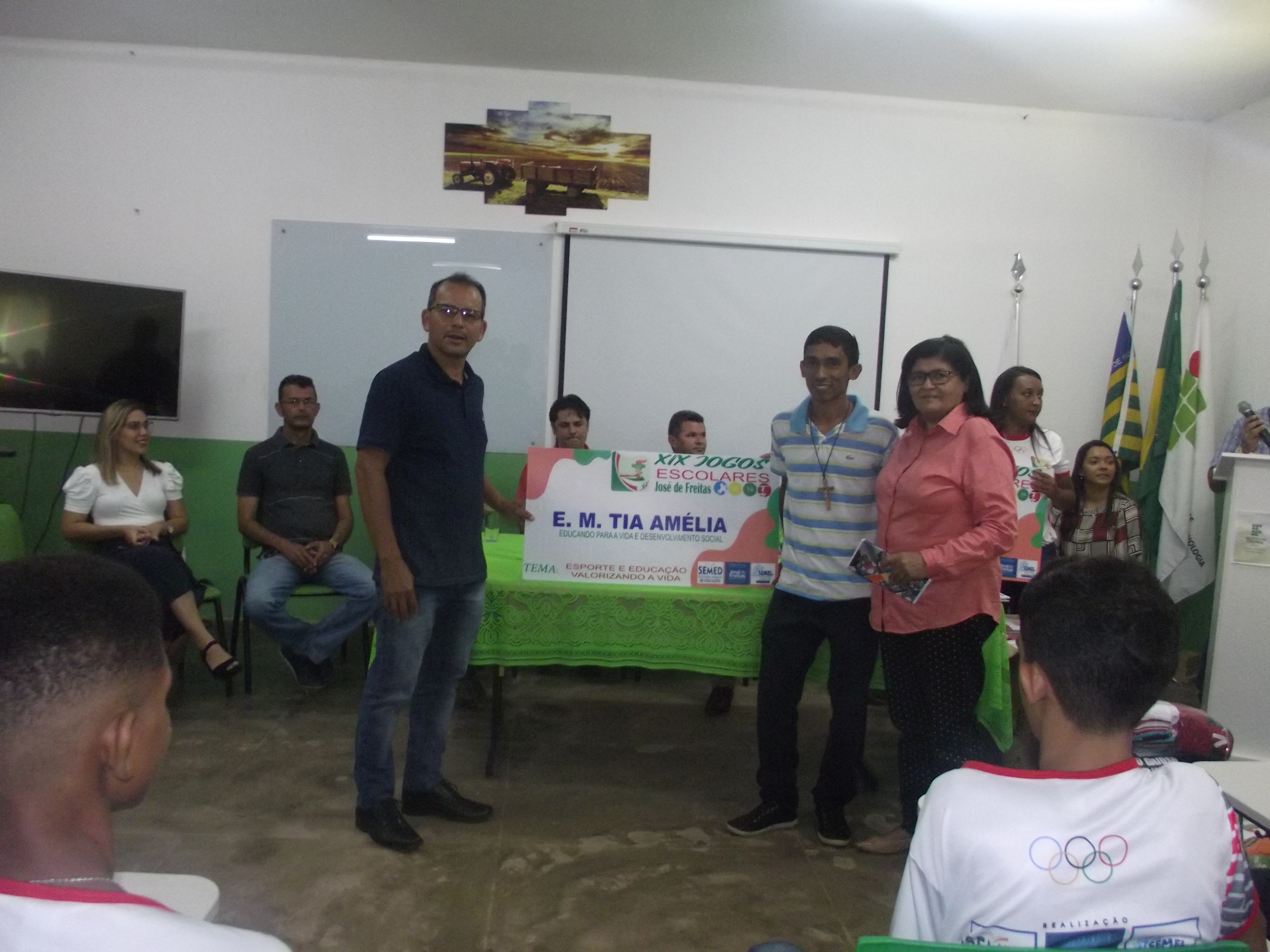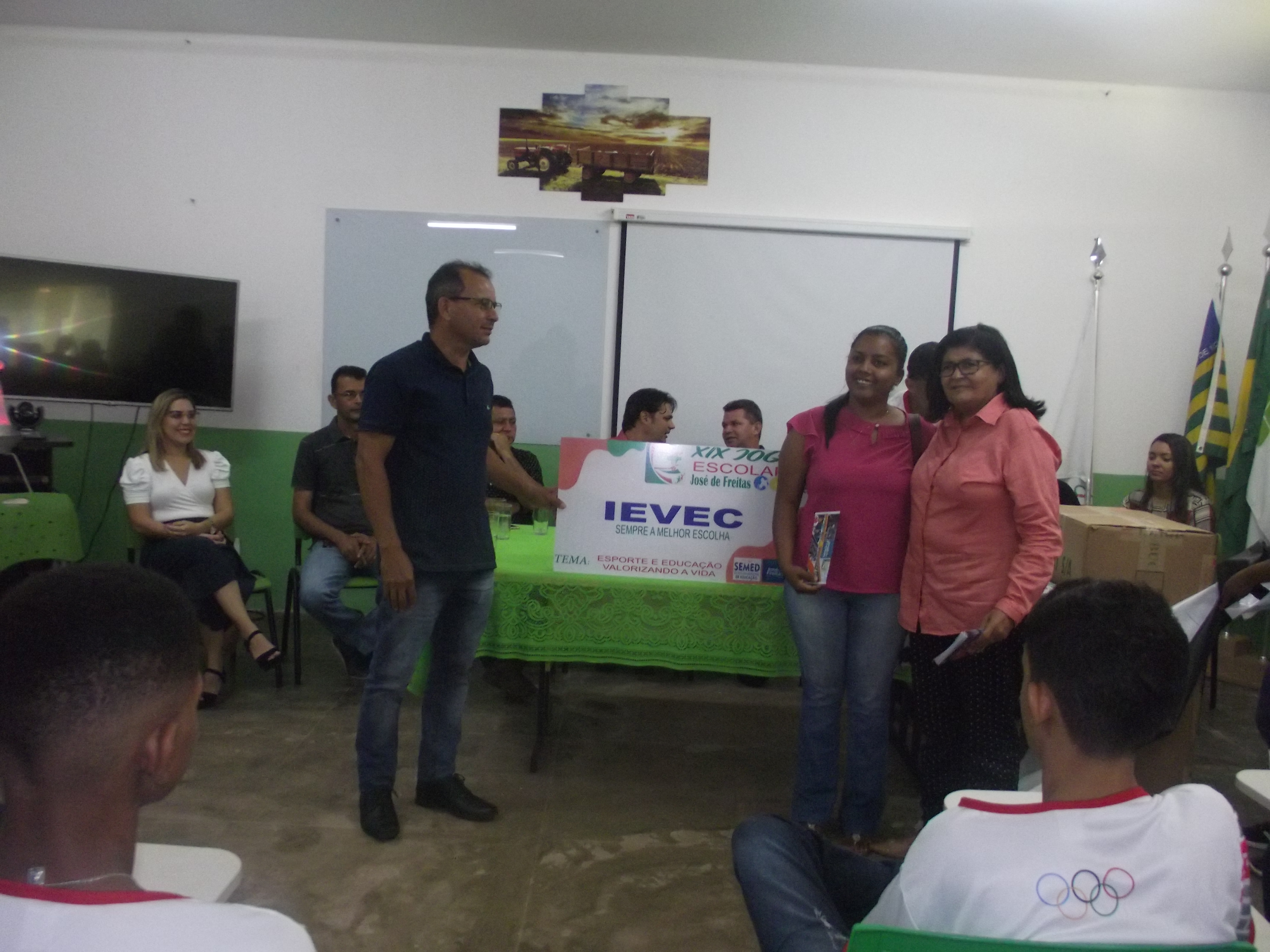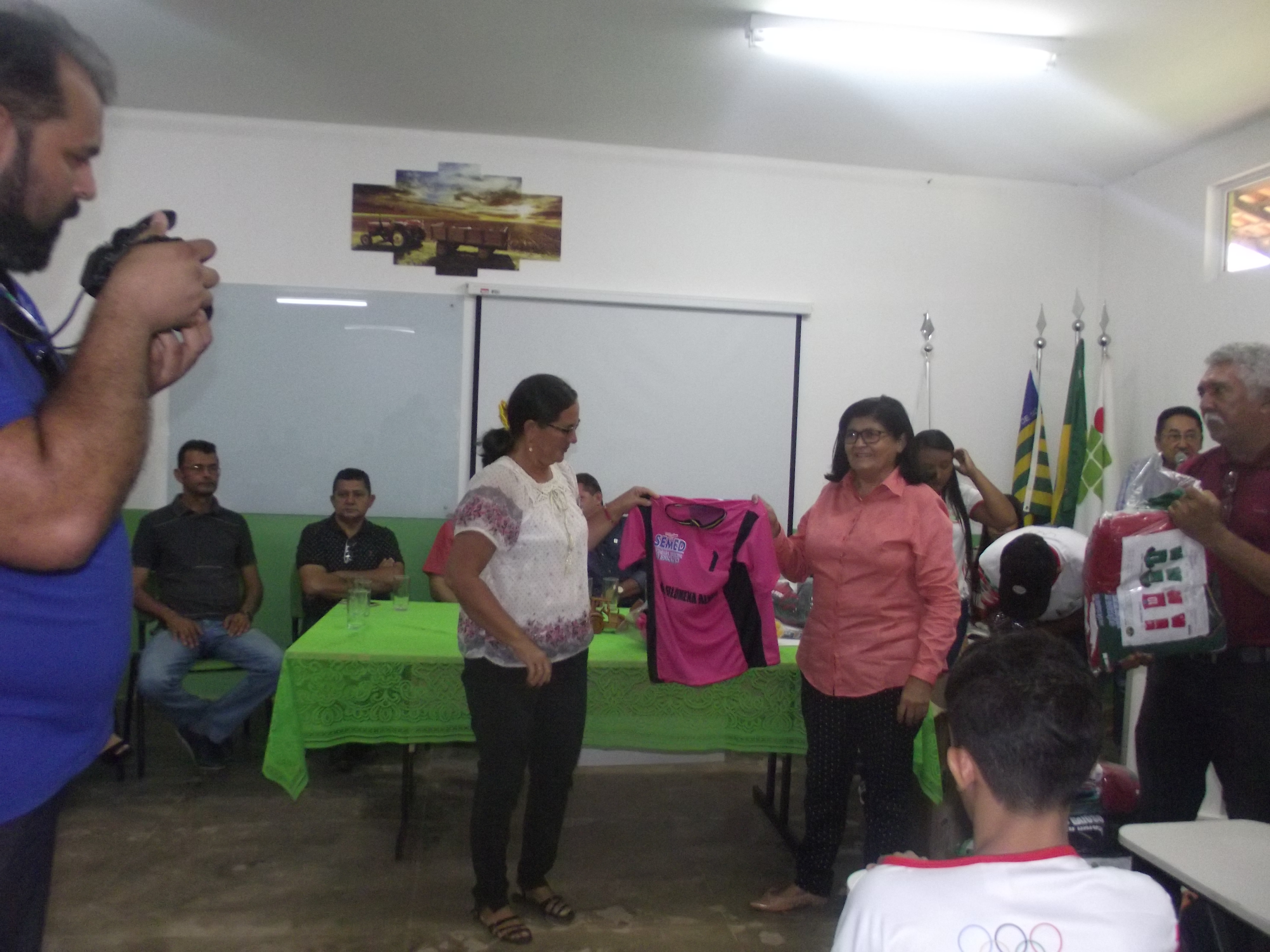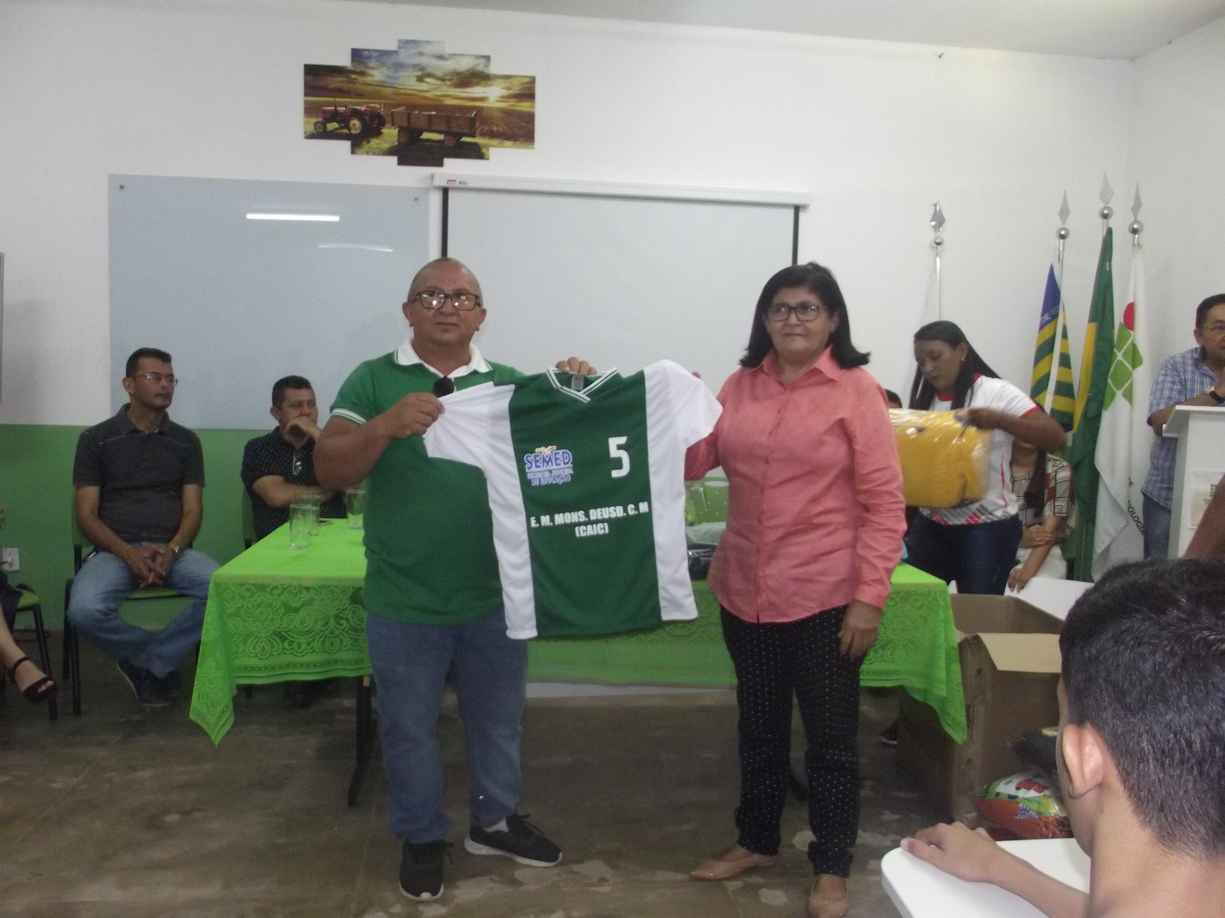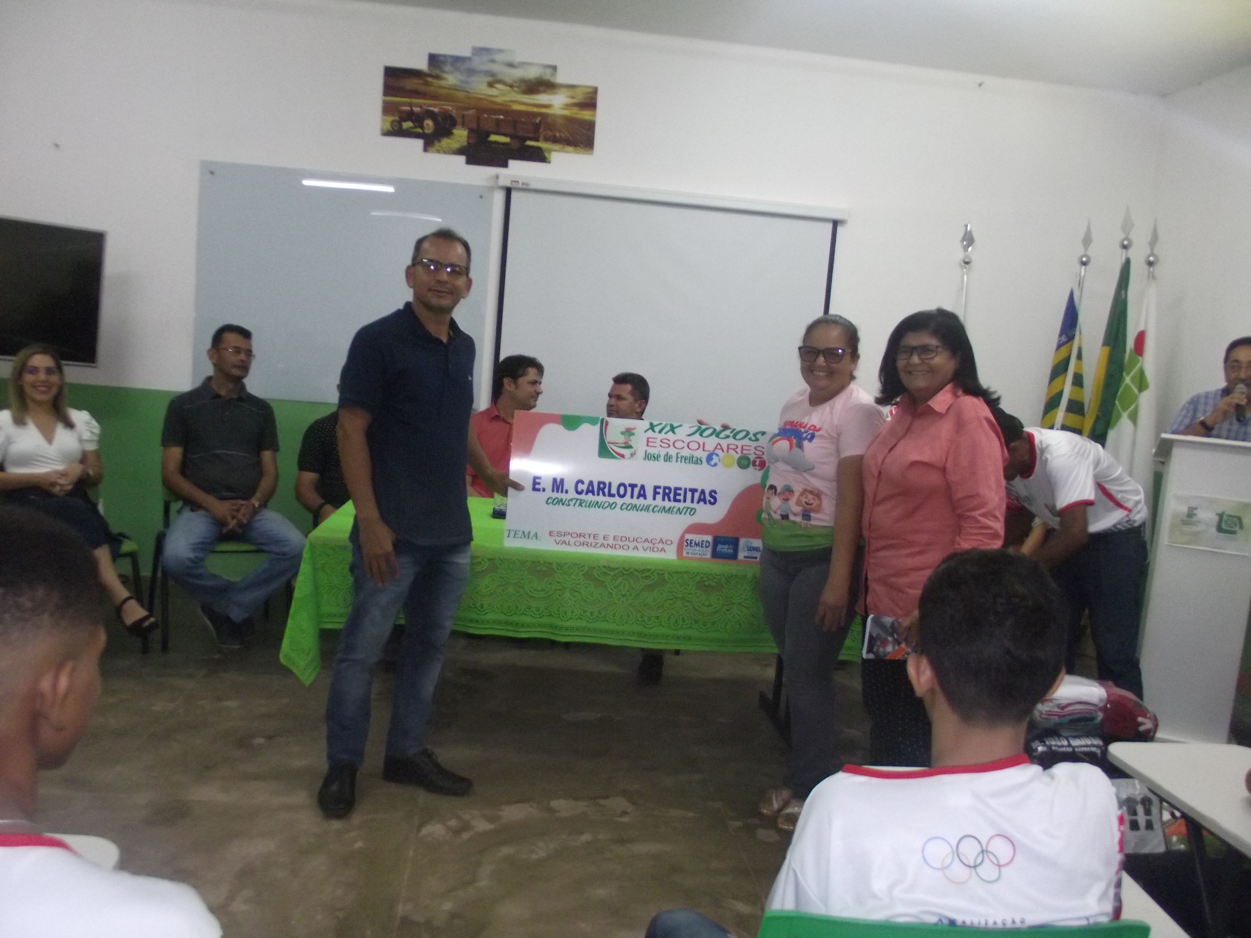 Dentro do evento foram entregues aos diretores das escolas que irão participar dos Jogos Escolares, as placas com os nomes das escolas participantes e os uniformes que os atletas irão utilizar nas competições.