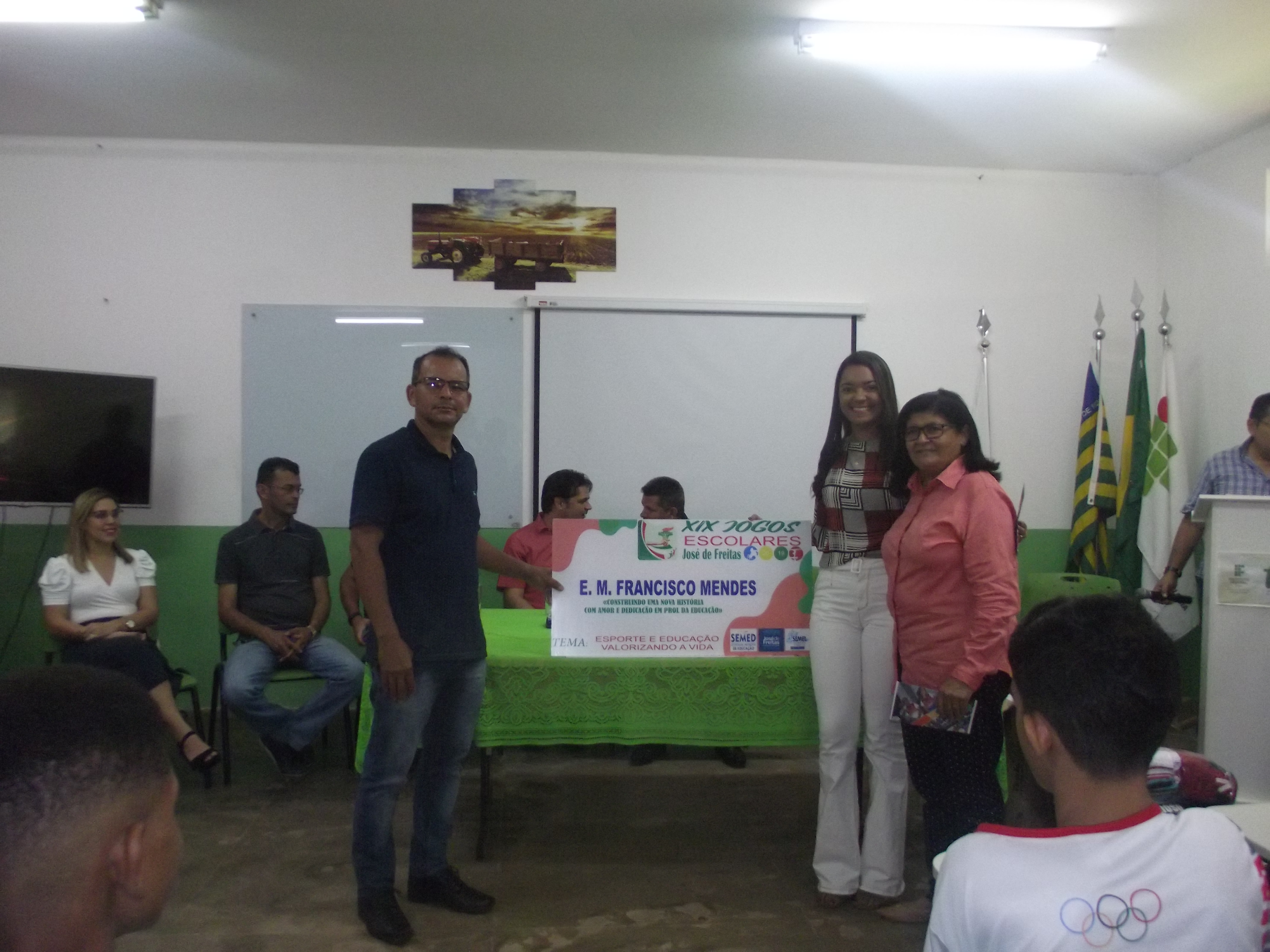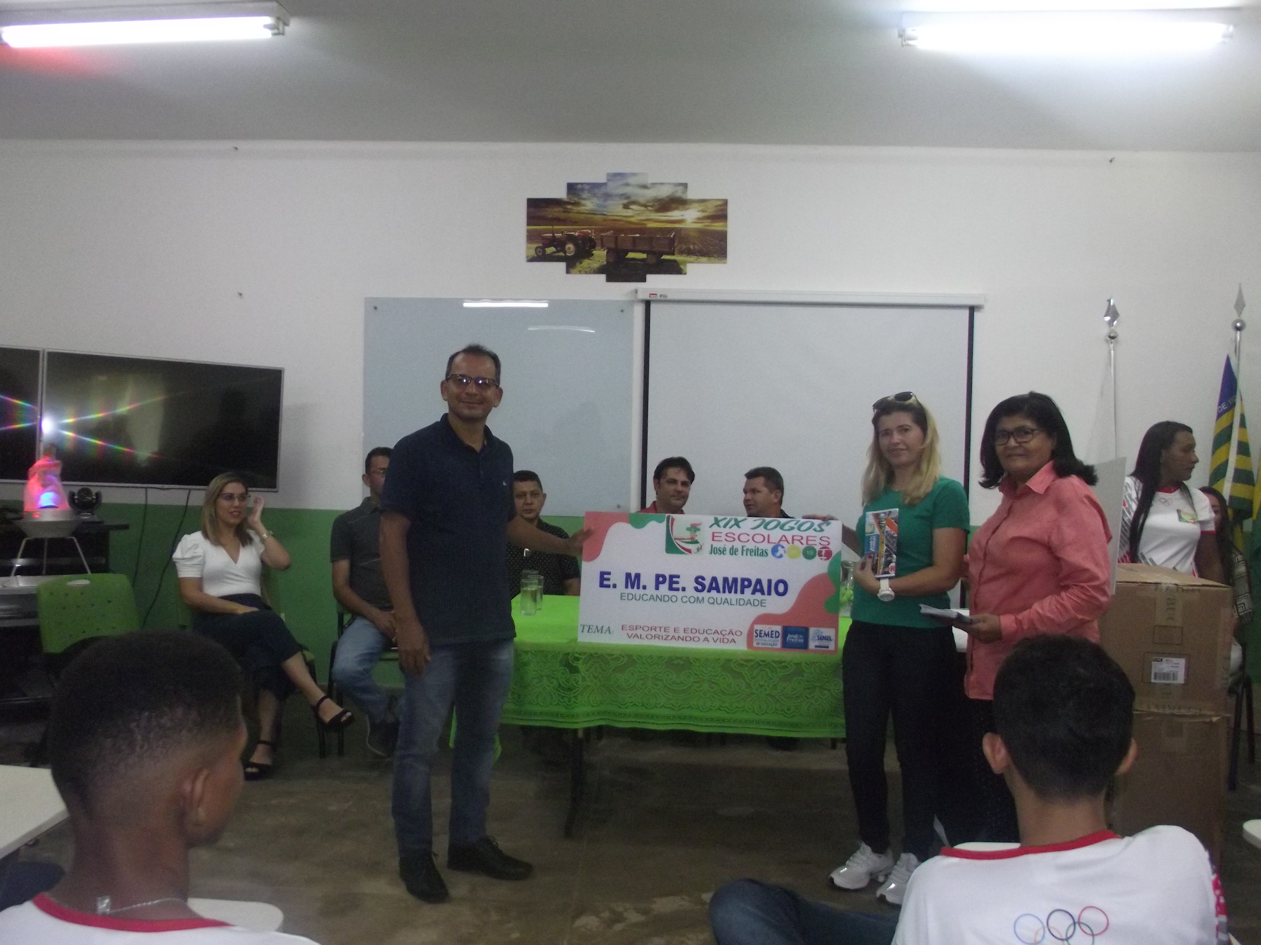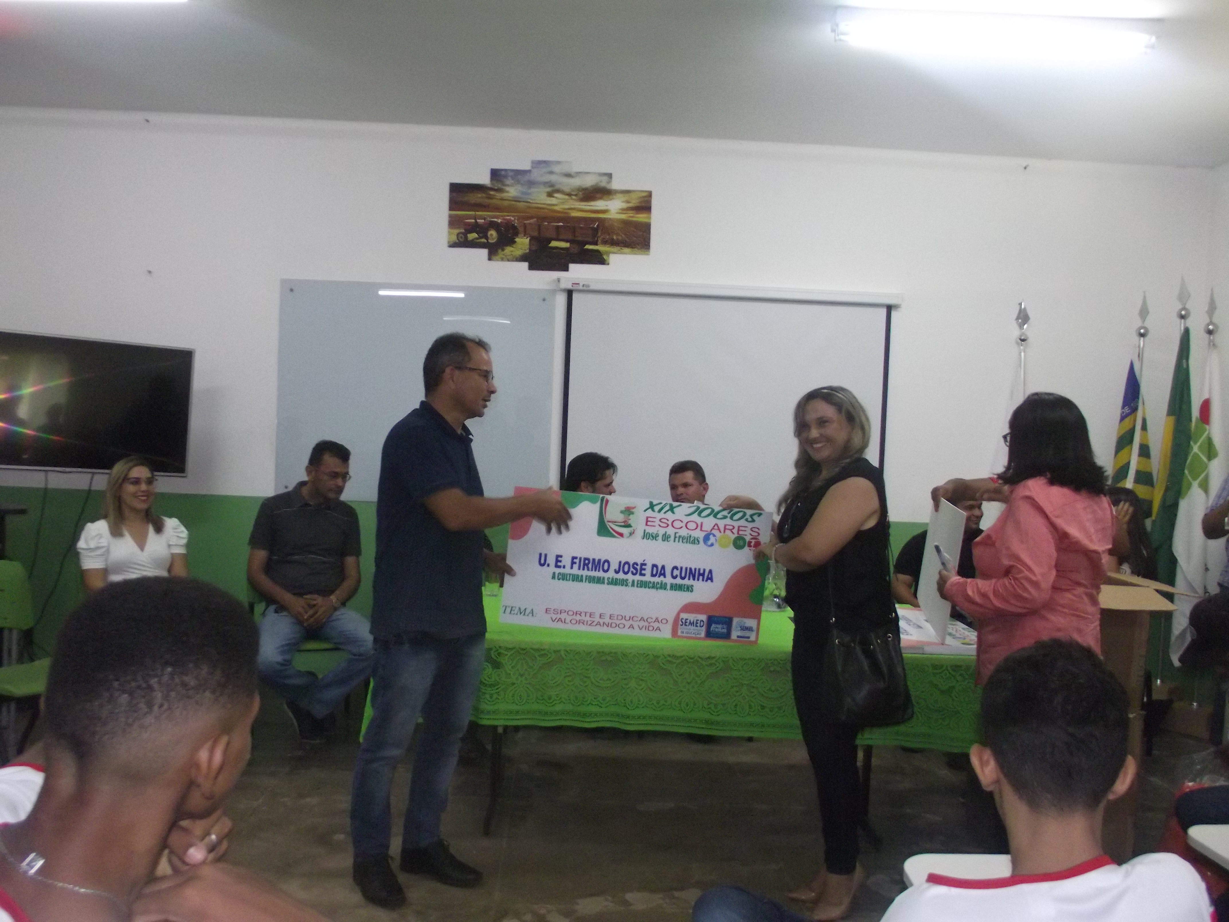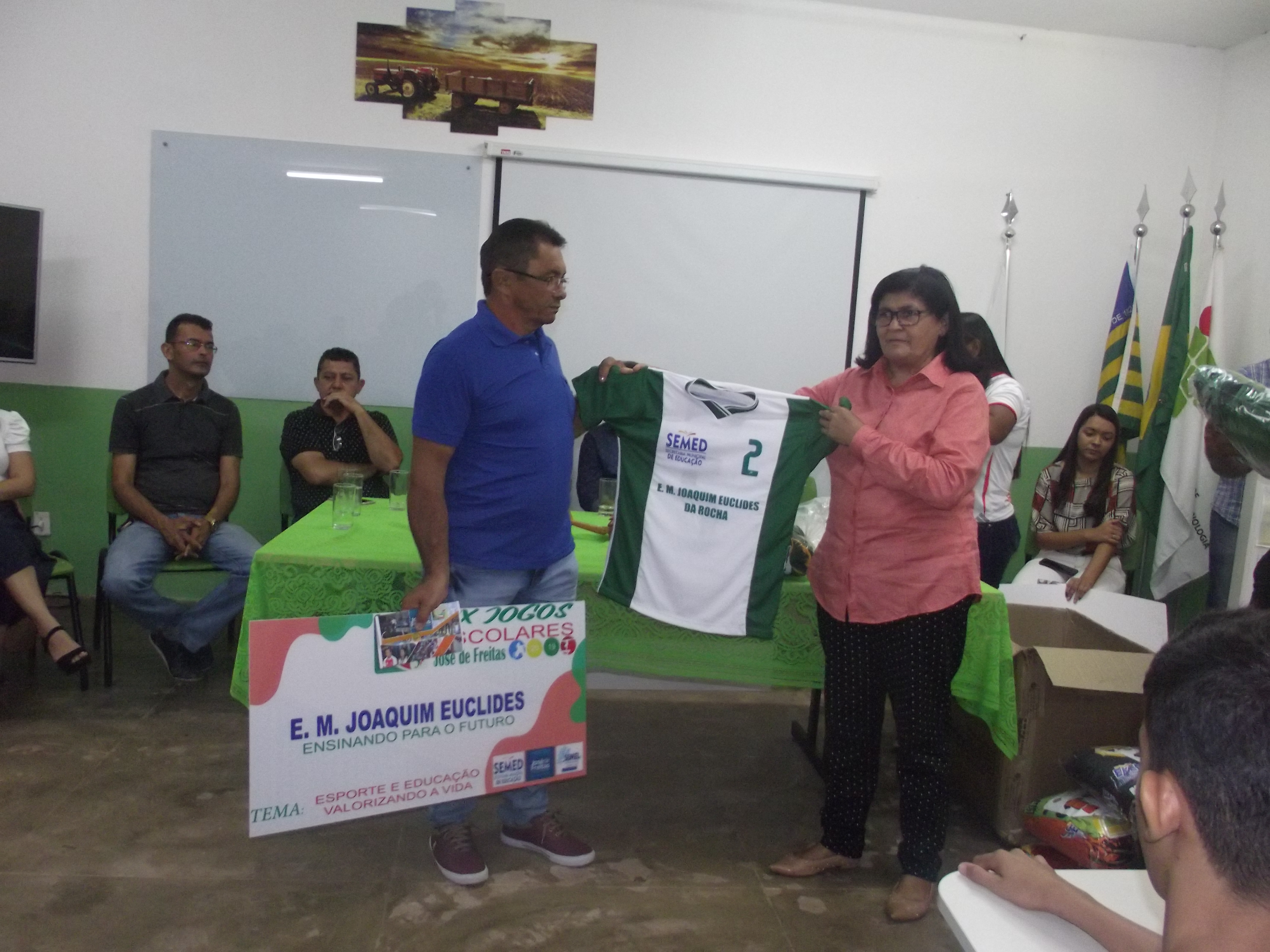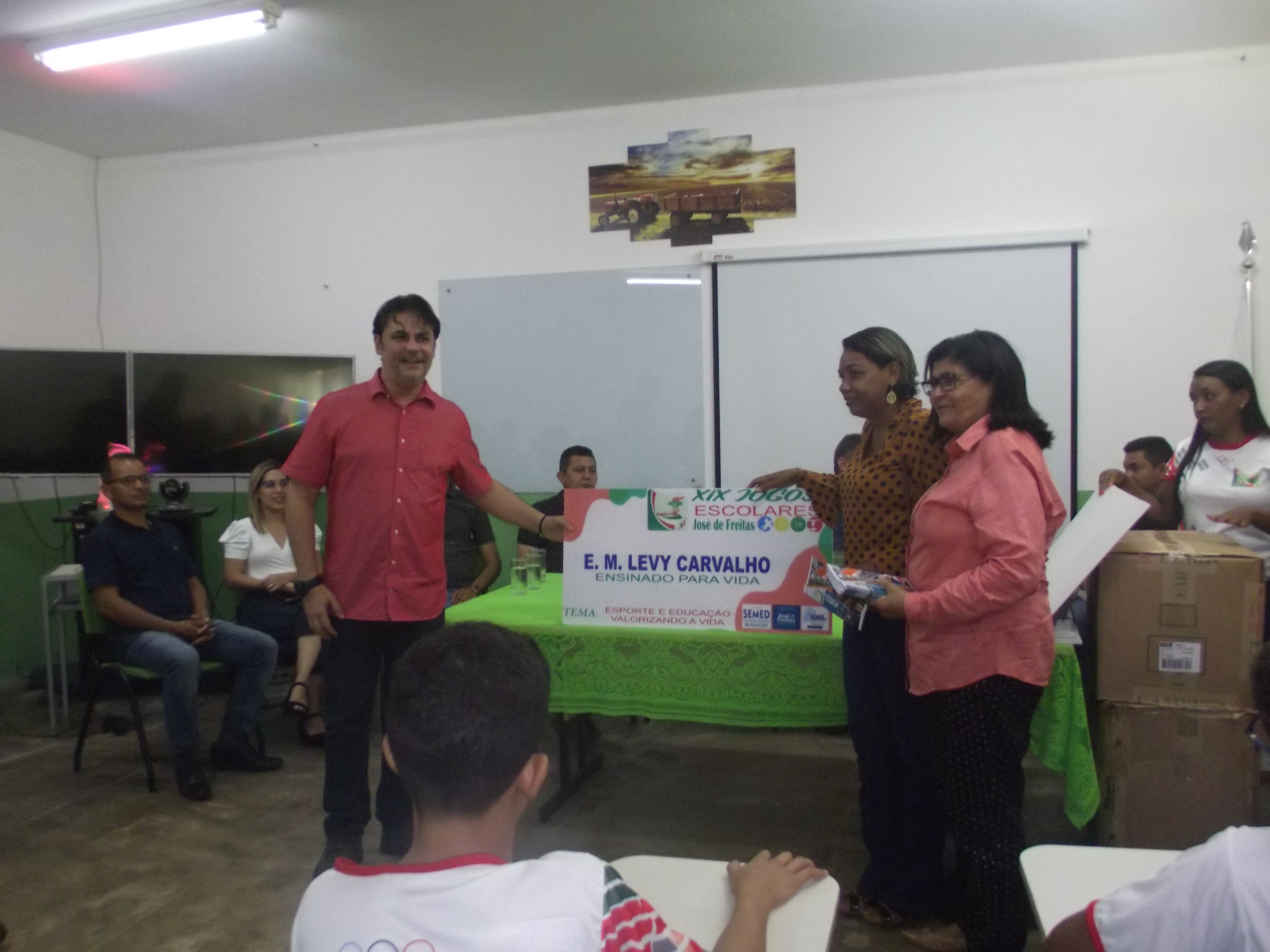 Dentro do evento foram entregues aos diretores das escolas que irão participar dos Jogos Escolares, as placas com os nomes das escolas participantes e os uniformes que os atletas irão utilizar nas competições.