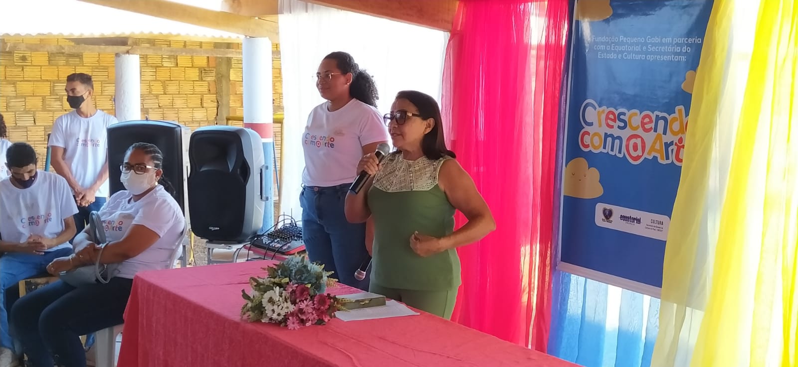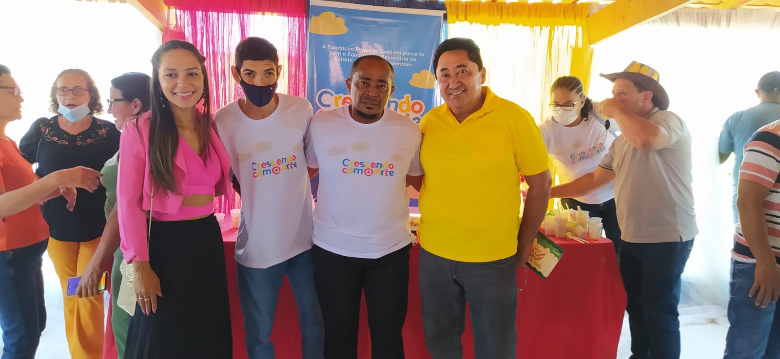 Neste último sábado dia 17 de setembro de 2022 os representantes da Fundação Pequeno Gabi fizeram o lançamento do Projeto Crescendo com a Arte. O evento aconteceu na Escola Municipal Infantil Pequeno Gabi no Bairro Nossa Senhora do Carmo.Laura Letícia uma dos membros da fundação fez a abertura do evento dando boas vindas a todos e contando um pouco da história da Fundação.