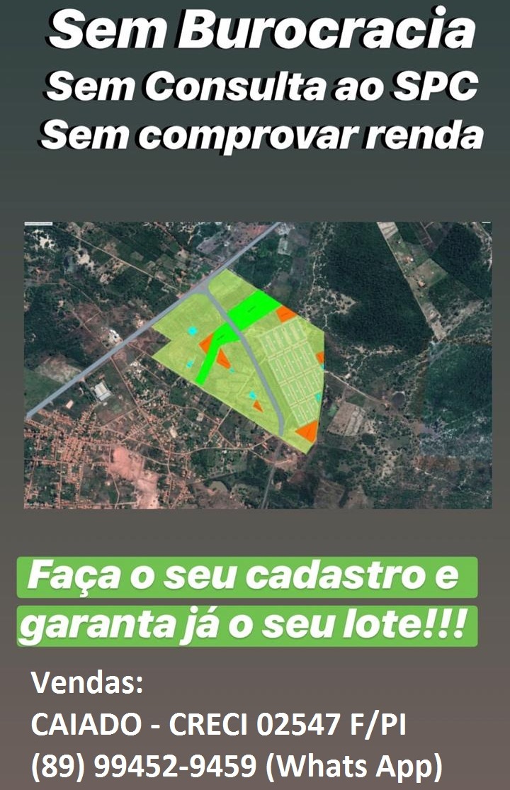 O local de vendas e negociações está provisoriamente na Praça Governador Pedro Freitas, no centro da cidade de José de Freitas. Procurar o corretor CAIADO,telefone (89) 99452-9459 (Whats App).