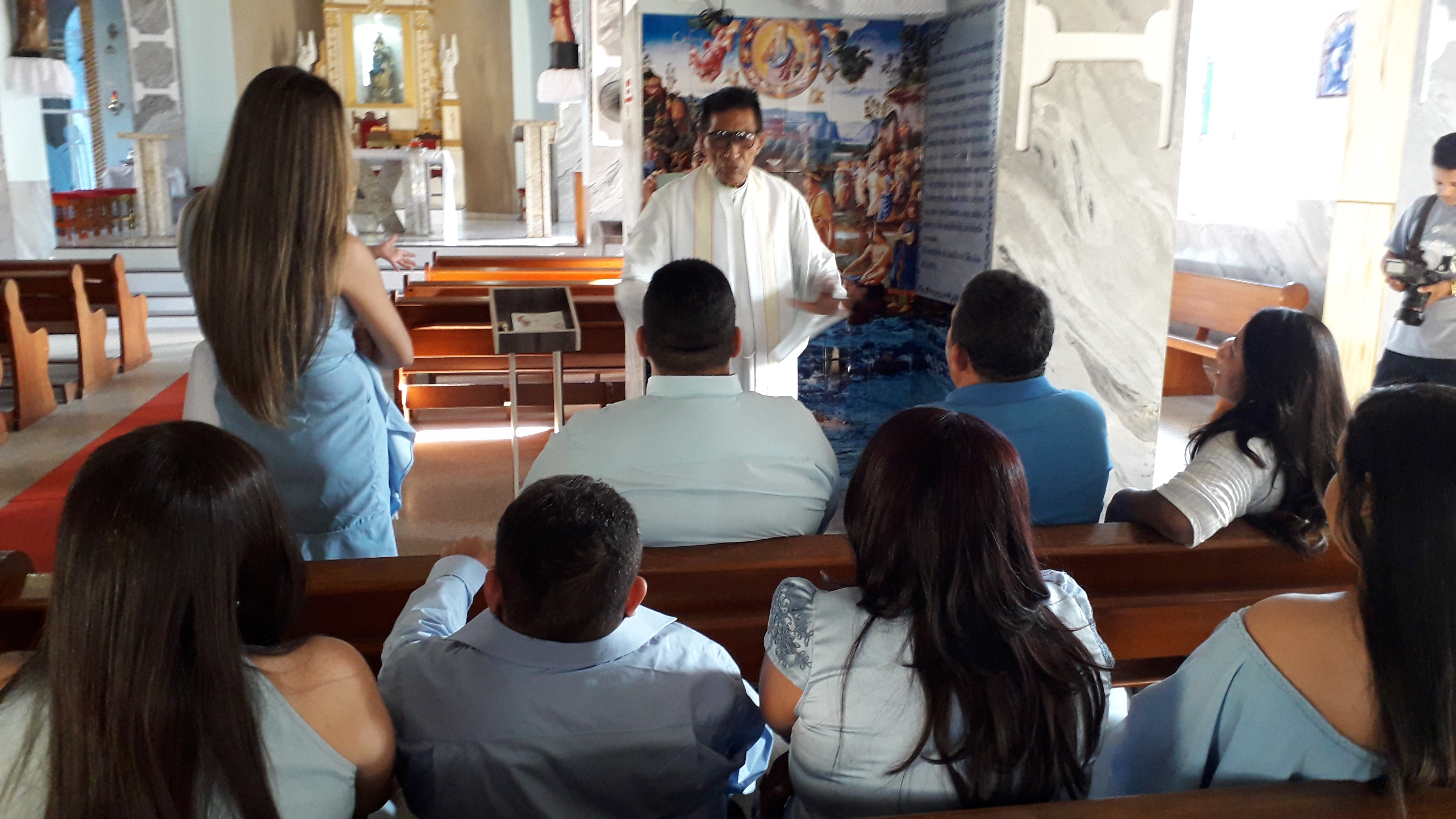 Padre Antônio Primo conversou com os pais, padrinhos e familiares, explicando a importância do batismo. E assim Luiz Benício recebeu a benção de seus Padrinhos de Batismo-Alexandre Almendra e Maria Alice Craveiro e dos Padrinhos de Consagração-Humberto Teles e Hilda Maria.