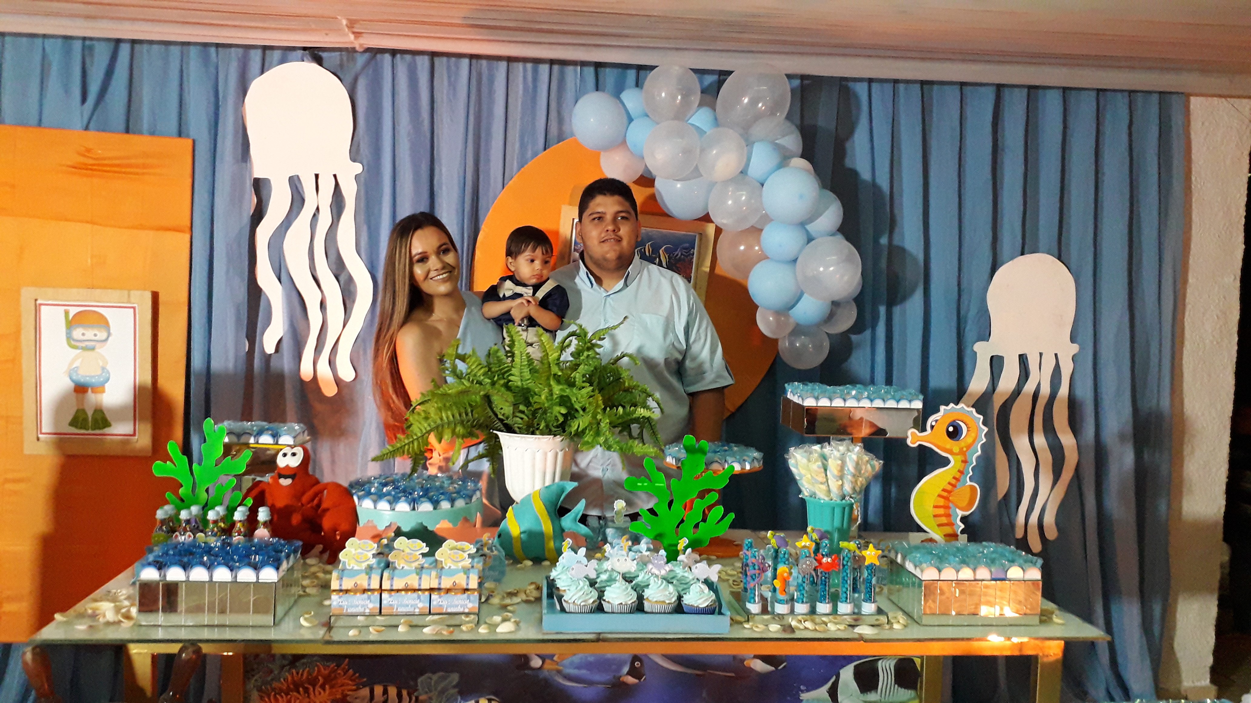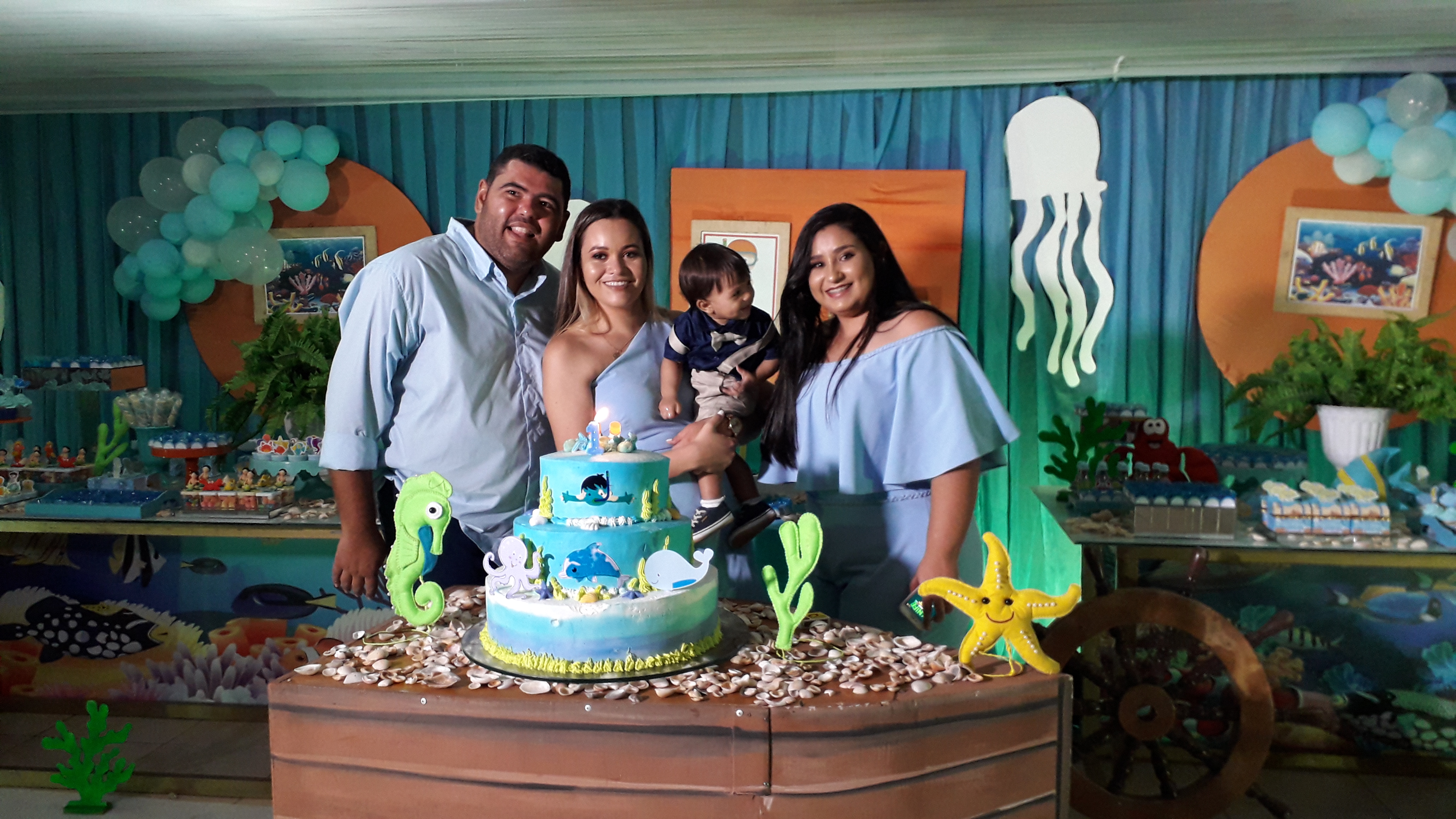 Luiz Benício acompanhado de seus pais Hudson Neto e Joyce receberam seus convidados com muita alegria, neste momento único na vida de ambos. O Tema Fundo do Mar deu uma alegria ao ambiente, tornando o clima mais infantil, alegre e muito colorido. Os familiares e amigos foram abraçar e parabenizar Luiz Benício pela passagem de seu primeiro aniversário e por ser consagrado pelo batismo.