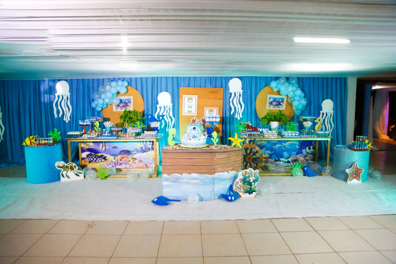A festa fundo do mar explora as riquezas, os mistérios e a diversidade da imensidão profunda do oceano. Um tema lúdico e colorido para festas infantis, tanto de meninas, quanto de meninos. É perfeito para estimular a criatividade e a imaginação das crianças com muita diversão.