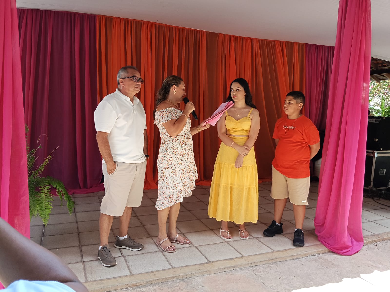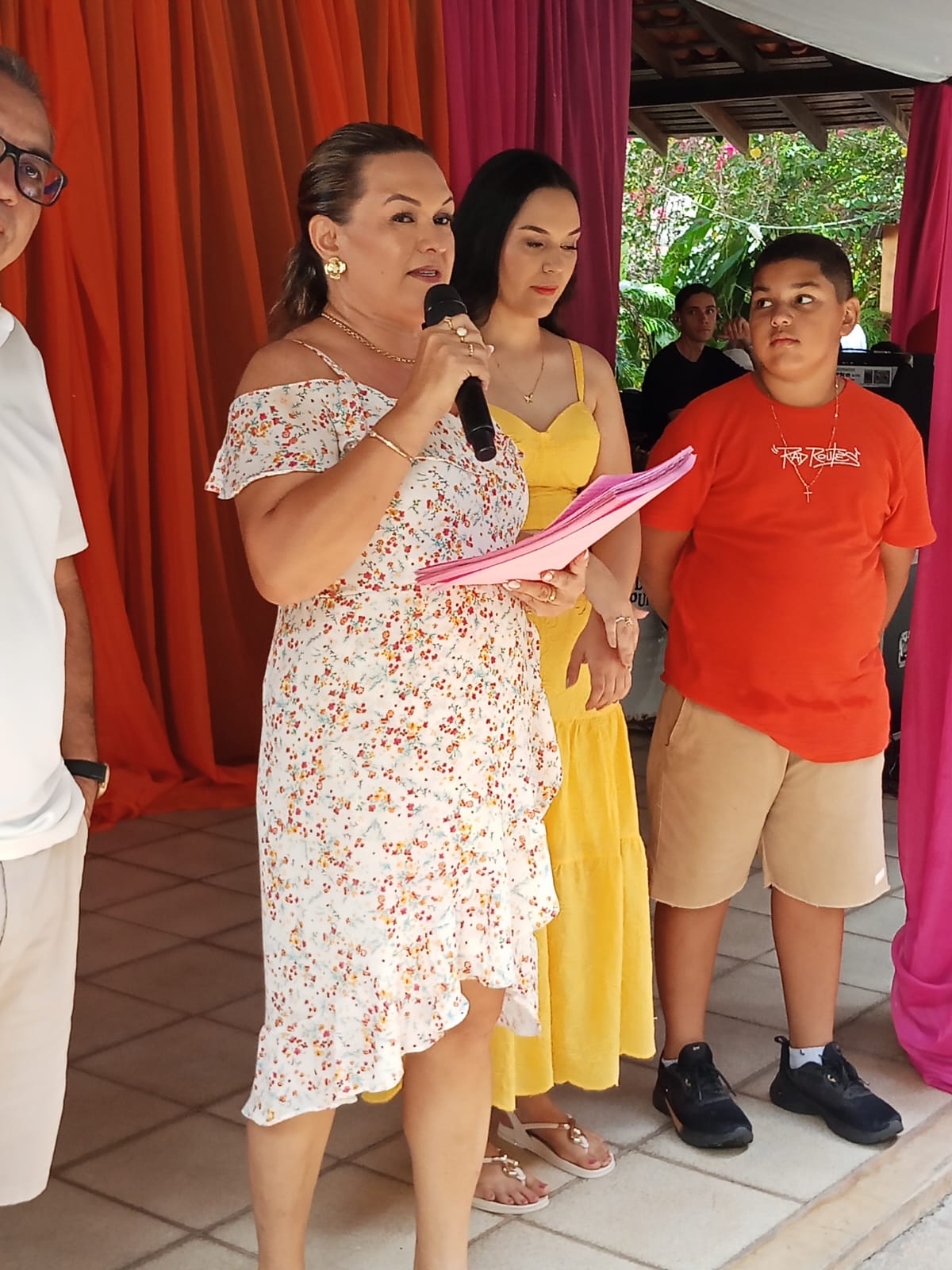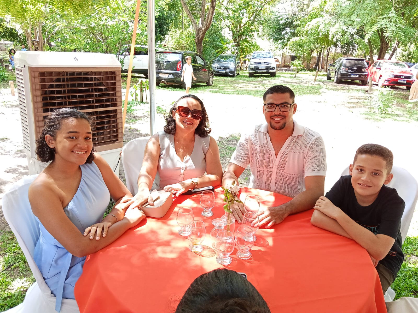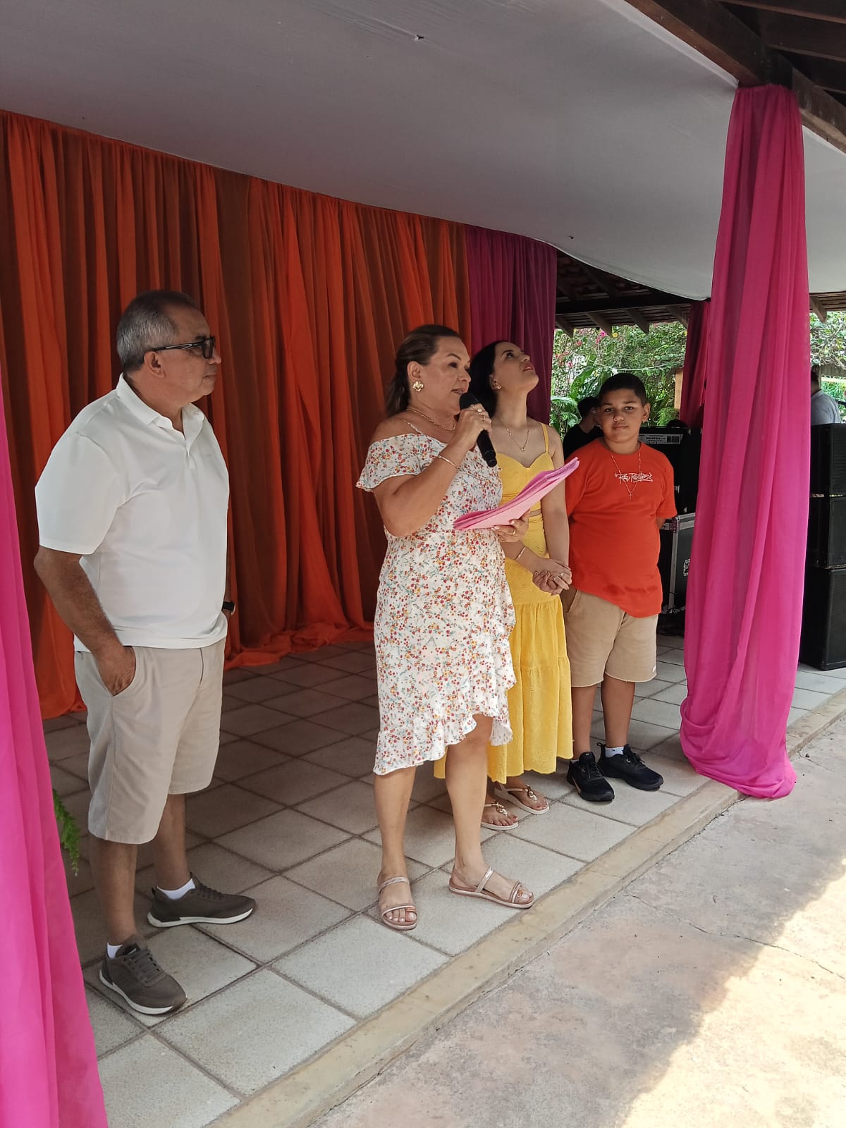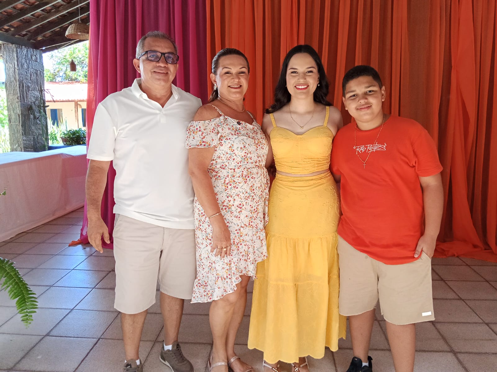 Um dos momentos mais marcantes da festa foi quando a mãe de Manuela, Márcia Ximenes, acompanhada do esposo e do filho Miguel, leu uma linda mensagem sobre a história da filha. Suas palavras, cheias de verdades, amor e emoção, destacaram a desenvoltura, a personalidade iluminada de Manuela e o belo trabalho educativo que ela já desenvolve na cidade de José de Freitas. Foi um instante de muita sensibilidade, onde a família se completava e irradiava amor.