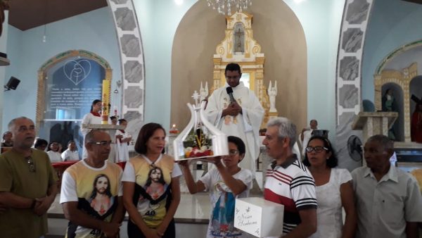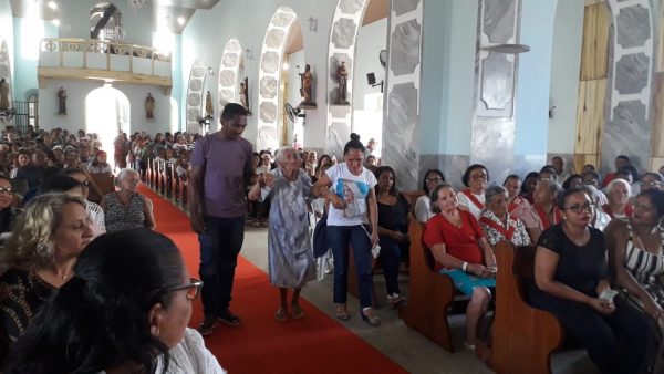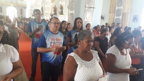 Por ser hoje comemorado o dia do dizimista da Paróquia de Nossa Senhora do Livramento a equipe da Pastoral do Dizimo adentrou a igreja para a organização das oferendas, ainda no final da missa, membros da Pastoral do Dizimo prestaram conta do valor arrecadado do mês de abril e a dizimista sorteada do mês Sra. Antônia.  Sra. Antônia, D. Toinha como é mais conhecida foi a sorteada do dizimo do mês de abril.Representando as mães Padre Gilcimar convidou a Sra. Alcinda de 102 anos para cantaram os parabéns por todas as mães presentes e do município.Padre Gilcimar apresentou o casal, Acledson e Cristiane da cidade de Cabeceira, da Paroquia de São José, que conduziram a imagem de Nossa Senhora Aparecida até a Igreja de Nossa Senhora do Livramento. O Diácono Francisco José fez o convite a todos para sua ordenação que acontecerá dia 24 deste na Igreja de Nossa Senhora do Livramento e sua primeira missa que acontecerá na comunidade Porteira velha, onde residem seus pais e é o seu ponto de origem. Os membros da Pastoral da Pessoa Idosa tiveram o cuidado de distribuir cadeiras para os fiéis e procurando dá prioridade aos idosos para não ficaram em pé.