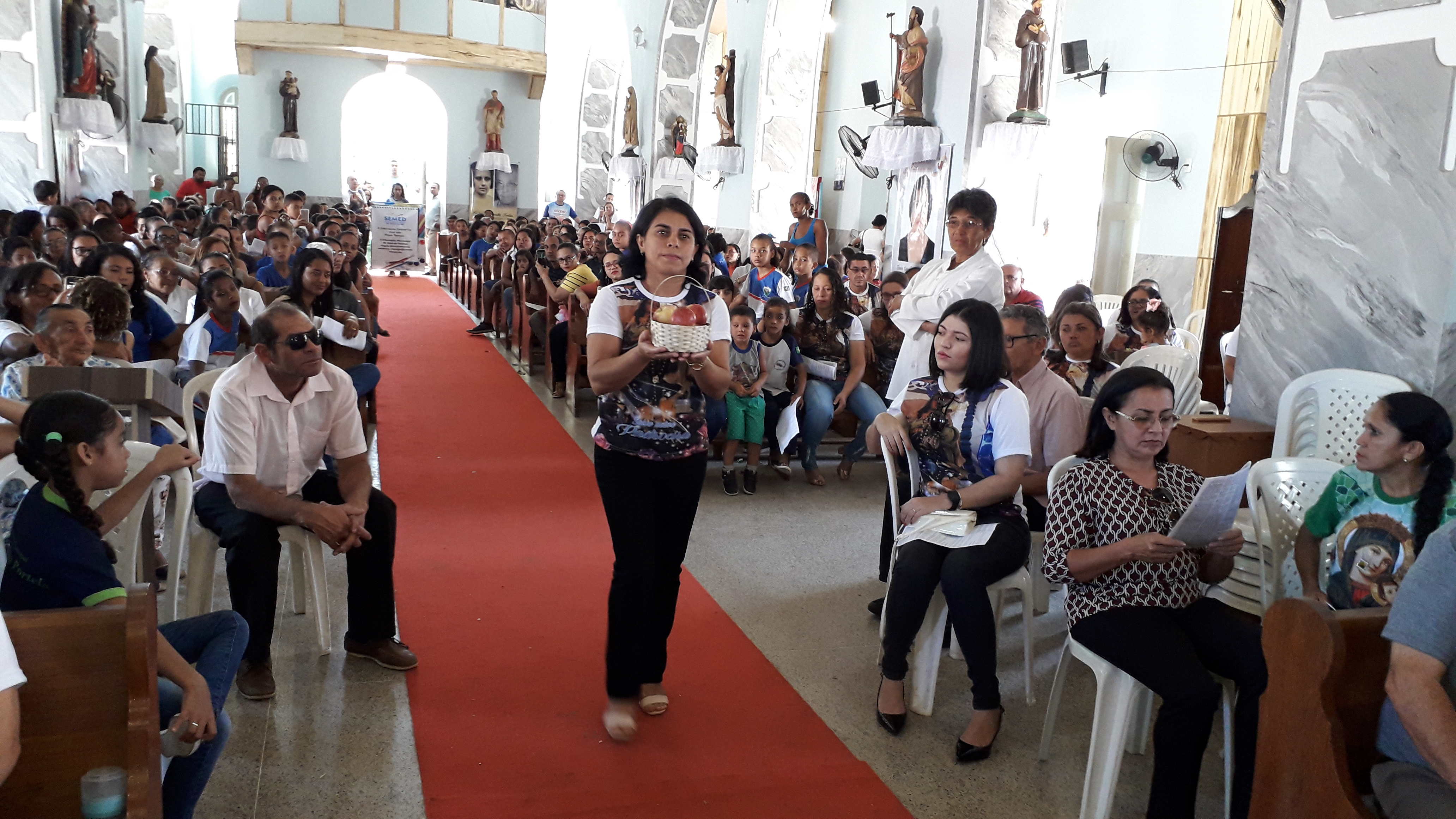 Também foram apresentadas as ofertas litúrgicas ao altar do Senhor, como o pão e o vinho Padre Gilcimar Proclamou a Palavra do Senhor, segundo o Evangelho – Lucas 12,32-48