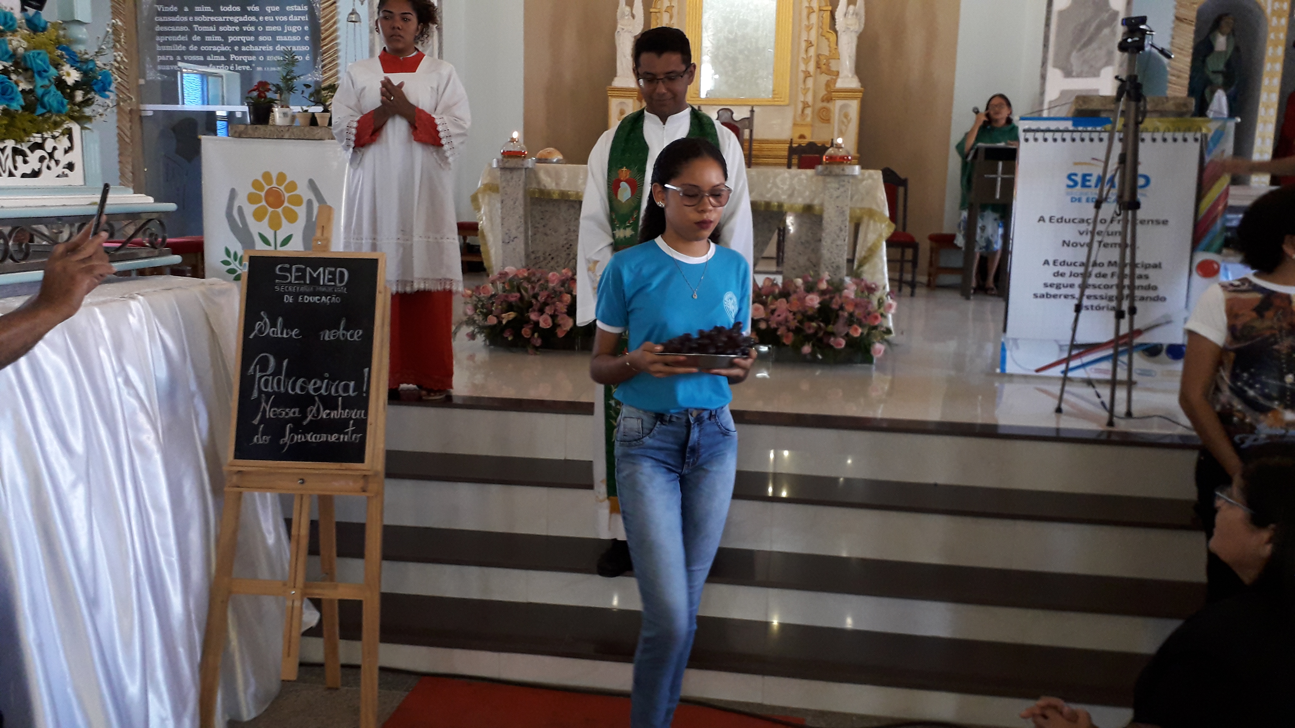 Ainda dentro de sua homilia falou sobre como a educação é importante em nossas vidas e como pode uma gestão mudar e modificar hábitos através da educação. O pós- comunhão foi apresentado pela aluna Kiara da Escola Mérito D’Martone, onde interpretou uma bela canção.Ao final da celebração a Secretária de Educação Professora Amparo Holanda deixou sua mensagem de agradecimento e de felicitações a todos que fazem a educação em nosso município, assim como aos pais, já que comemoramos o seu dia nesta data.