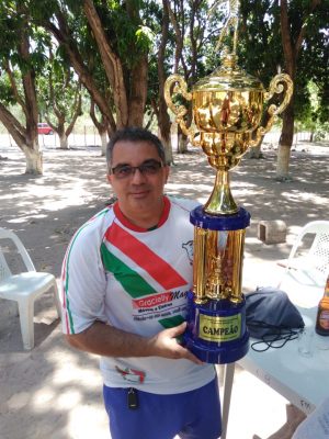 JJ Vieira, sempre participando dos eventos sociais de nossa cidade como membro do clube bandeirantes, um momento com o troféu do Campeonato Saudoso Osvaldo Lustosa.