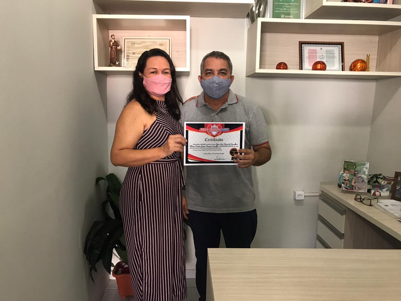 João José Vieira de Carvalho- JJ vieira em junho de 2020 foi um dos destaques do Blog Paulo Craveiro News ao completar três anos de comunicação escrita, ao lado de sua esposa Márcia Cristina Gomes Ximenes Carvalho receberam seus certificados como casal destaque e empresários, ele no ramo imobiliário e ela em comércio alimentício.