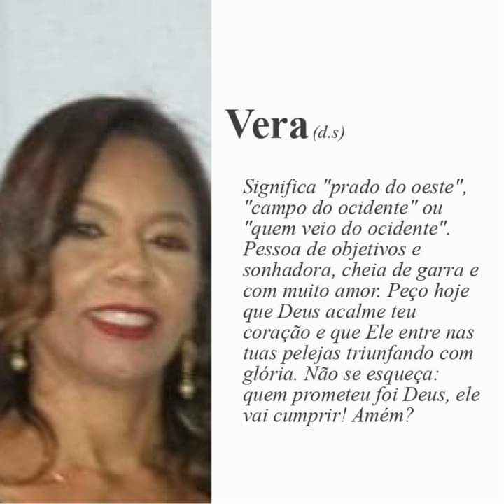 Uma mulher que tem todas as simpatias encantadora, de uma educação exemplar e de muita garra na vida. Hoje neste dia de seu aniversário recebe nossas homenagens, pela grande mulher e uma pessoa muito amiga. Vera sempre procurou unir o trabalho e a família, com uma especial atenção aos amigos. Minha amiga que Deus lhe der muita saúde e paz em sua vida. Receba nossas felicitações de todo coração. Parabéns e Feliz Aniversário.