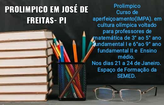 José de Freitas-PI está no mapa das Olimpíadas Nacionais desde o ano de 2019, há uma preocupação para inserir a cultura olímpica nos estudantes da rede municipal de ensino, a Secretaria Municipal de Educação de José de Freitas – SEMED no tocante ao departamento de Ensino Fundamental em parceria com o Instituto de Matemática Pura e Aplicada- IMPA , vem ofertar aos professores de matemática do 3° ao 9° ano do Ensino Fundamental um curso de Aperfeiçoamento em tópicos de Olimpíadas de Matemática, A 1° Edição do programa PROLIMPICO conta com cerca de 35 polos em todo o Brasil e em parceria com várias instituições de ensino. A SEMED vem se destacando por oferecer uma boa estrutura para realização desse curso de aperfeiçoamento, a Secretária de Educação Professora Amparo Holanda não mediu esforços para dar todo o apoio a realização desse projeto em José de Freitas- PI, os coordenadores do polo em José de Freitas-PI , os professores: Jardel Alves Vieira e Aldreciano Nunes estão satisfeitos com a participação dos professores da cidade e outros municípios circunvizinhos. O programa PROLIMPICO conta com professores altamente preparados tendo uma boa qualidade nas aulas. Vale ressaltar os bons resultados alcançados pelos alunos de José de Freitas-PI , com bom número de menções honrosas na OBMEP e na ONC. Prefeito Roger Linhares