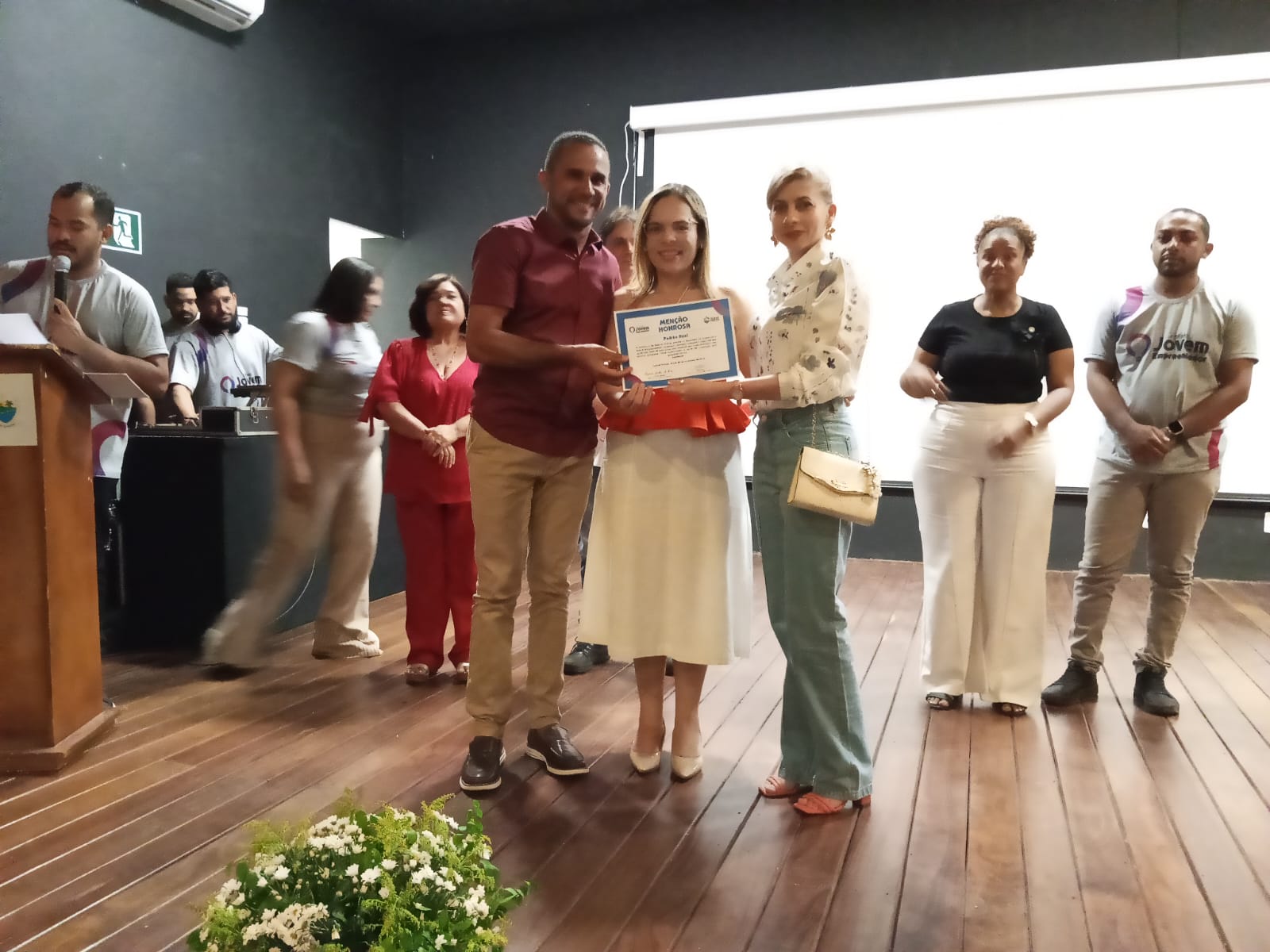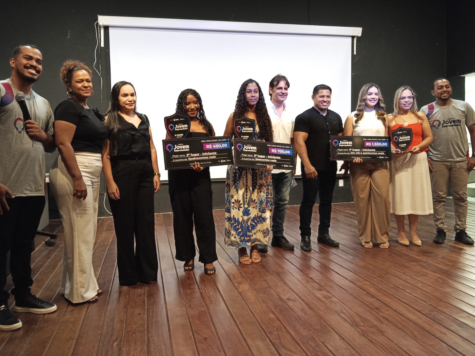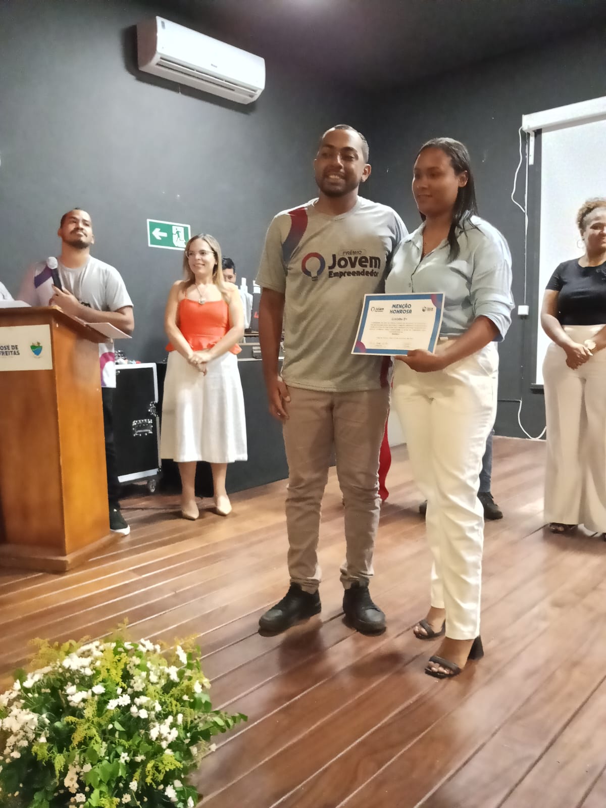 A Secretária da Juventude, Camila Mendes ao lado do Gerente da Sala do Empreendedor, Tomé Neto receberam a todos com muita delicadeza e satisfação. Camila deu boas vidas a todos, agradeceu a presença explicou algumas regras da premiação. Tomé Neto fez as apresentações e explicou alguns detalhes da premiação.