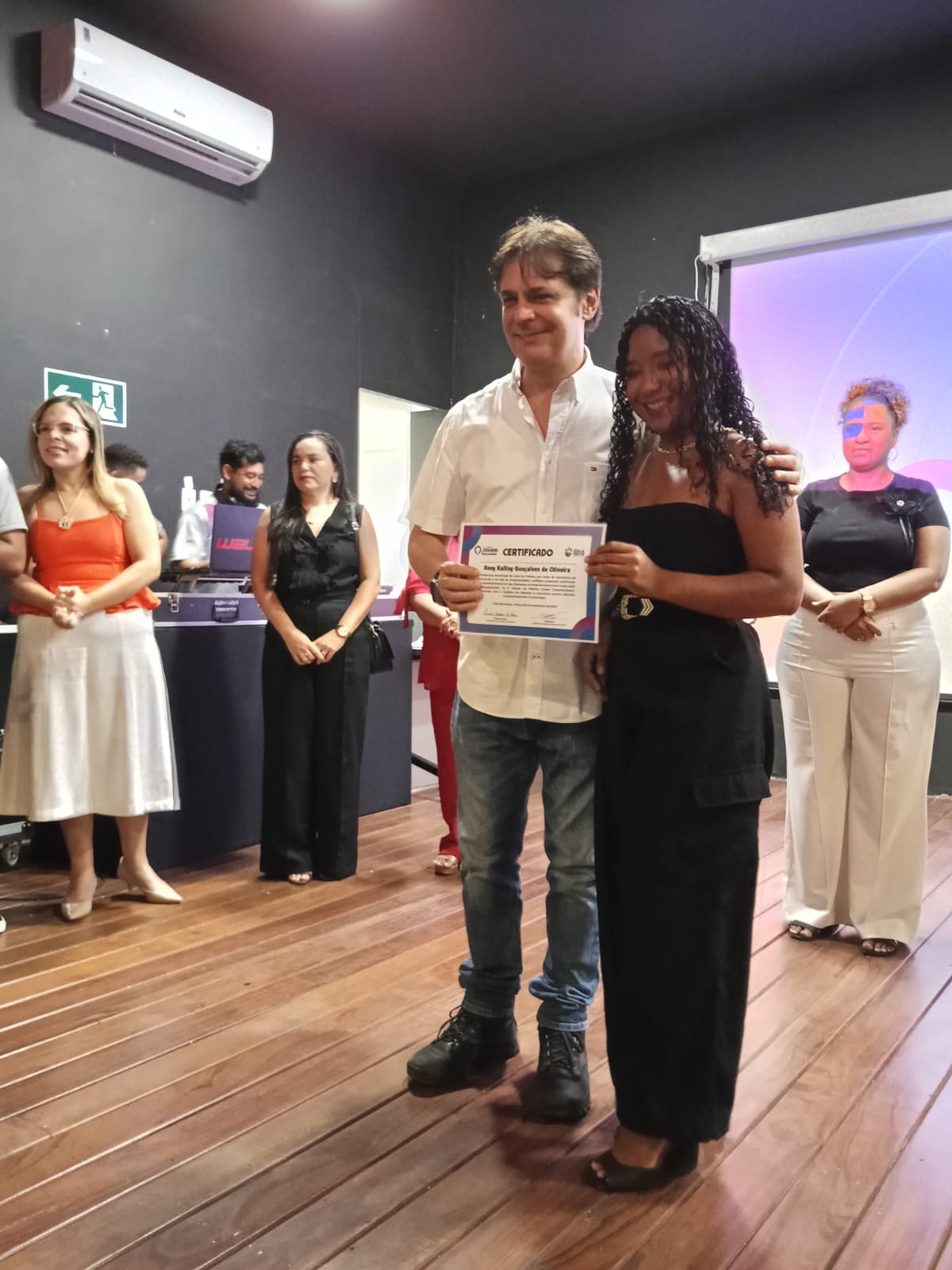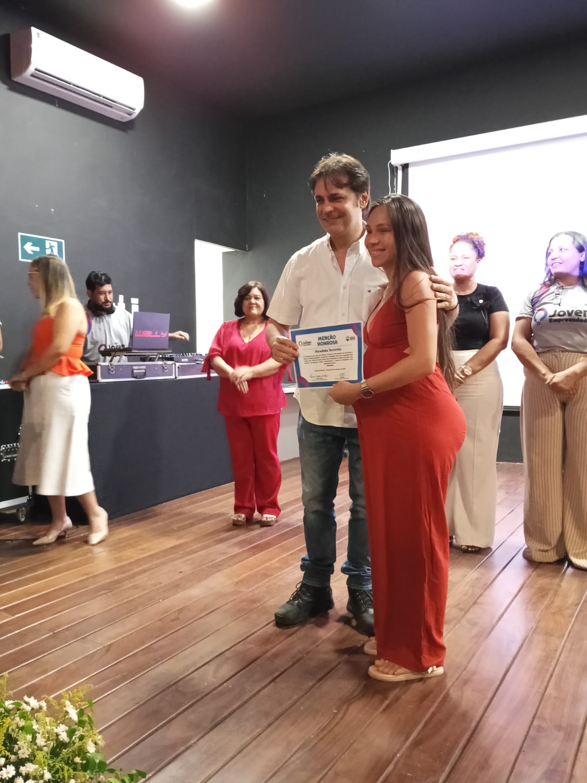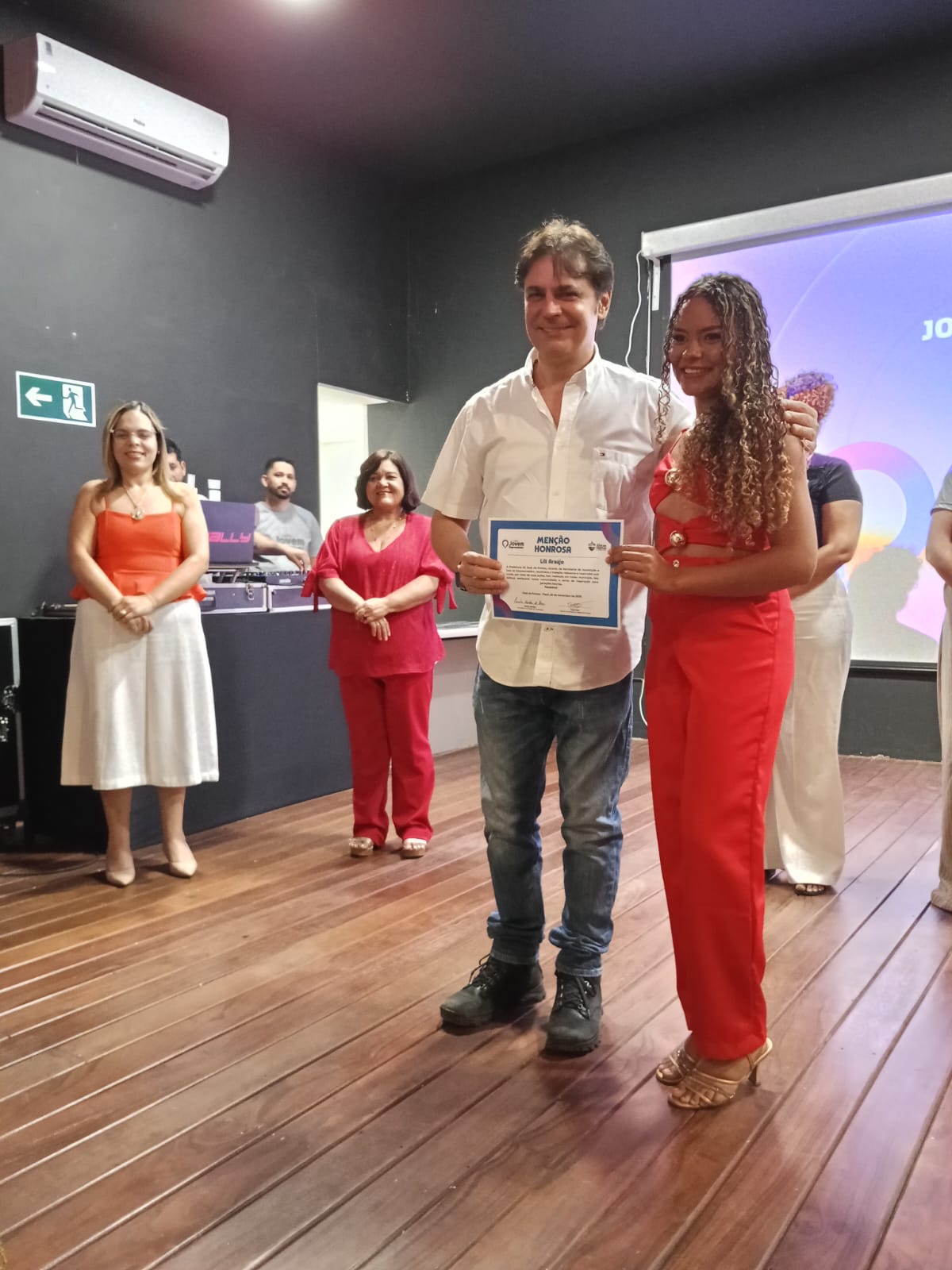 A Secretária da Juventude, Camila Mendes ao lado do Gerente da Sala do Empreendedor, Tomé Neto receberam a todos com muita delicadeza e satisfação. Camila deu boas vidas a todos, agradeceu a presença explicou algumas regras da premiação. Tomé Neto fez as apresentações e explicou alguns detalhes da premiação.