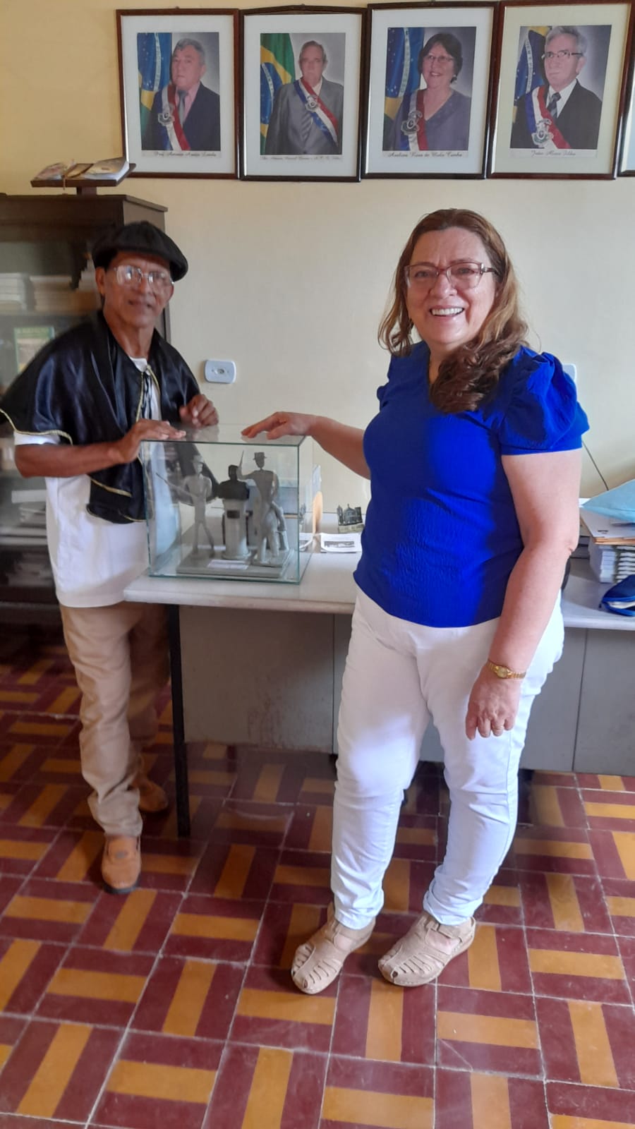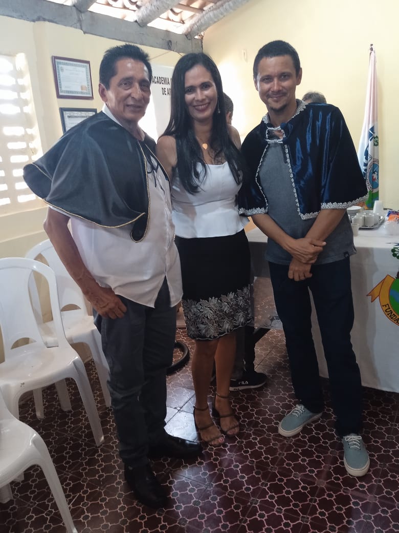Acadêmica Maria de Jesus de Araujo fez entrega aos membros da AFL, Gilmar Leite e Francisco Costa. Maria de Jesus faz parte das artes , com pintura, além de cronista.