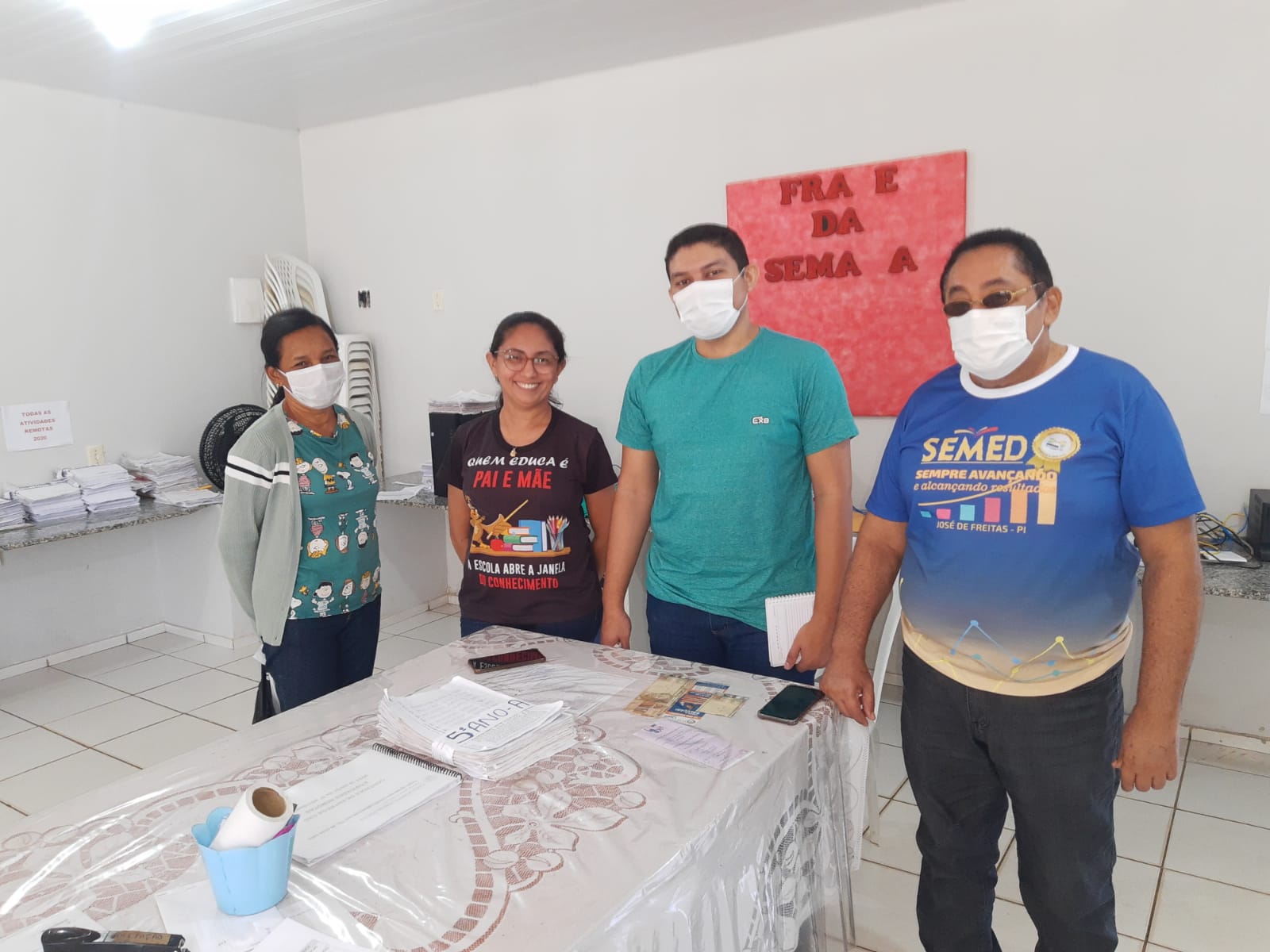 O Secretário em exercício designou tarefas para a equipe de supervisão, entre elas, visitar as escolas no sábado letivo, para dar suporte a este trabalho de educação no município.