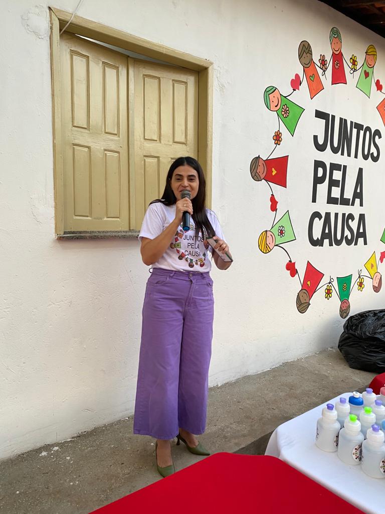 “Quando saí de minha cidade para ir estudar em Teresina, me lembro que eu não tinha nem um chinelo para ir, fui com o do meu irmão e ele ficou sem. Isso me marcou muito. Sempre procurei fazer a diferença na vida das pessoas por que sei da importância que é. Comecei ajudando através do projeto, Seja um Milagre e hoje o Juntos pela Causa é o meio que uso para ajudar quem precisa”, disse emocionada à mesma.