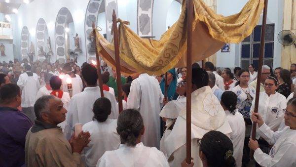 Ao final da missa O Santíssimo foi levado para Igreja de São Francisco em procissão, que irá permanecer em virgília com as equipes de adoração, retornando amanhã para Igreja de Nossa Senhora do Livramento, que logo após as adorações teremos a celebração da palavra do Senhor.