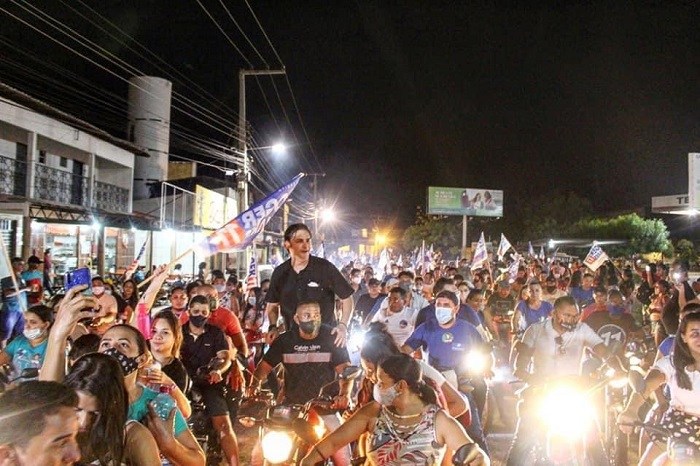 O Prefeito e Candidato a Prefeito Roger Linhares com seu jeito jovial, popular e carismático esteve na carreata na garupa de uma moto, junto de amigos e populares, ainda estavam em moto a primeira dama Germane Linhares, o irmão do prefeito Sam Martim Linhares, o médico Ricardo Camarço e ainda o vice-prefeito Antônio Abreu.