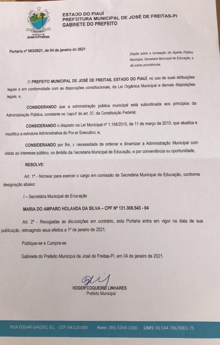 Portaria entre os primeiros secretário do novo ciclo de governo para 2021.