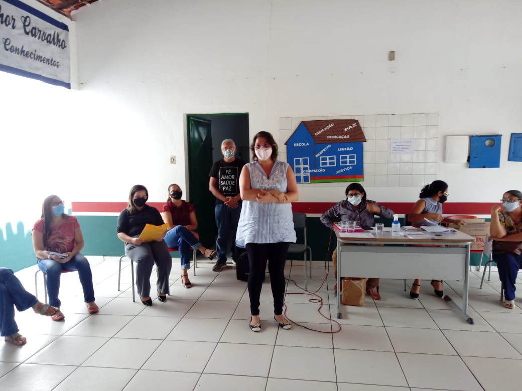A reunião aconteceu nesta última segunda-feira dia 01 de fevereiro de 2021 na Escola Municipal Senhor Carvalho. A Secretária de Educação Professora Amparo Holanda fez a abertura da reunião dando boas vindas a todos e agradecendo a presença de cada um. Participaram da reunião além da secretária, a superintendente de  ensino Conceição Ribeiro, o diretor de ensino Antônio Carlos, a equipe de supervisão escolar Semed, a advogada Elisângela Sousa, representante da Gerve Judithe França, da EJA e de programas, além dos gestores das escolas municipais.