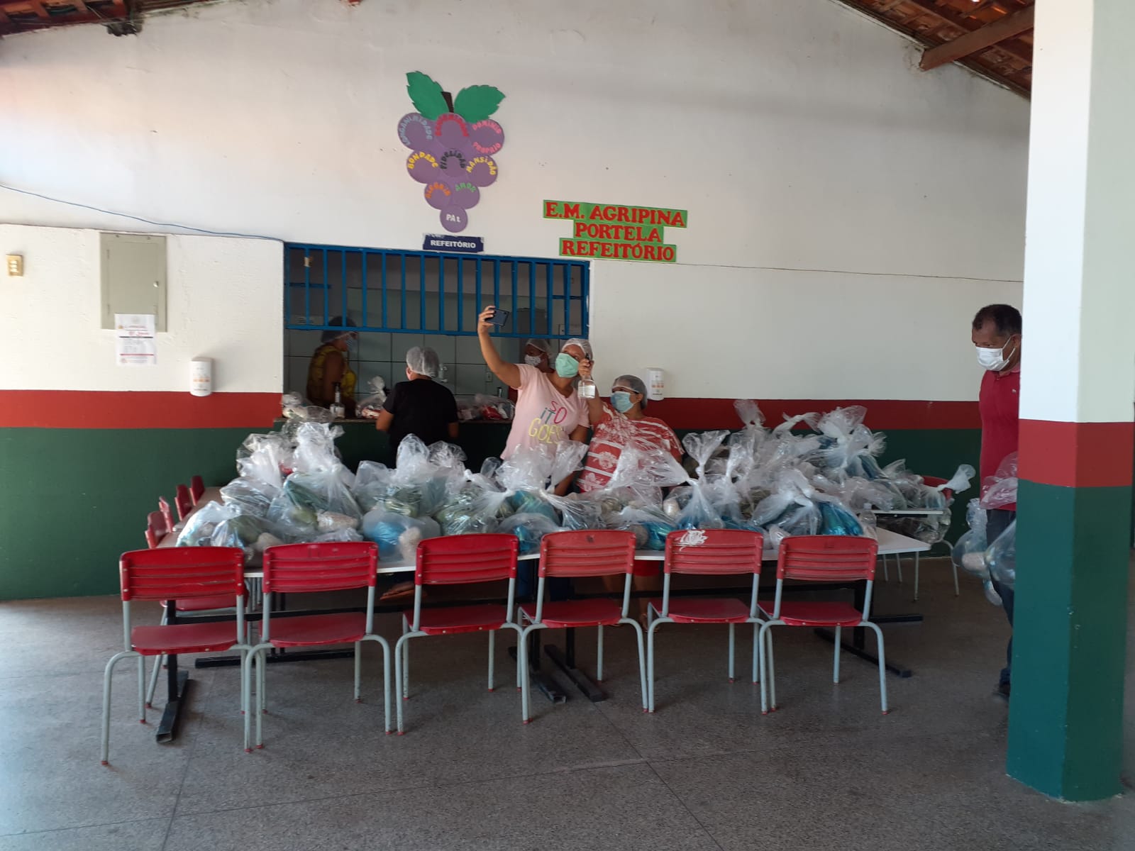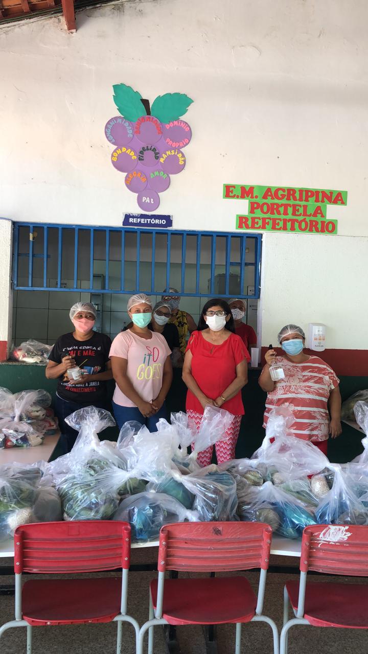 A Secretária de Educação esteve presente hoje na primeira entrega que iniciou pela Escola Municipal Agripina Portela, Escola Municipal Américo Celestino (São Domingos); Escola Municipal Mãe Noélia. A secretária fez a entregas dos primeiros kits para os pais de alunos que aguardavam ansiosos por este momento. O Kit Merenda Escolar contém produtos da agricultura familiar e produtos industrializados.