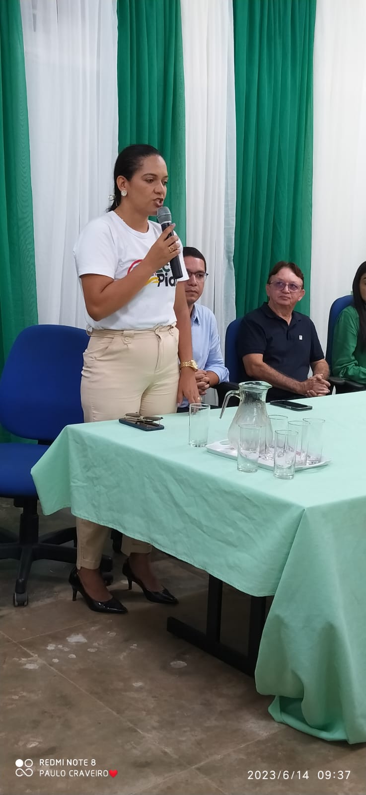 A solenidade teve inicio no auditório do IFPI e contou com as presenças das seguintes autoridades: Secretário Estadual de Meio Ambiente e Recursos Hídricos da SEMARH, Daniel Oliveira, Deputado Estadual Dr. Hélio, Presidente do Instituto INDESC, Andreia Ferreira,vice-presidente do INDESC, Renato Rodrigues, Professor do IFPI, Antônio Galvão, suplente de vereadora,Ivaneide Matos, Presidente da Associação de Moradores, José Campina.