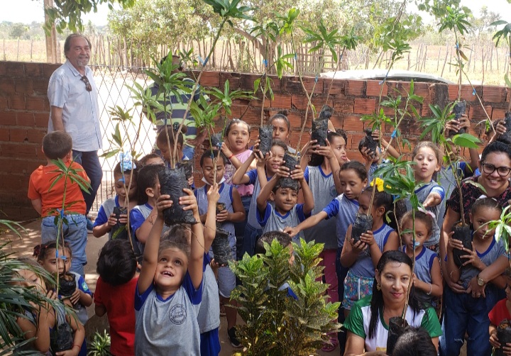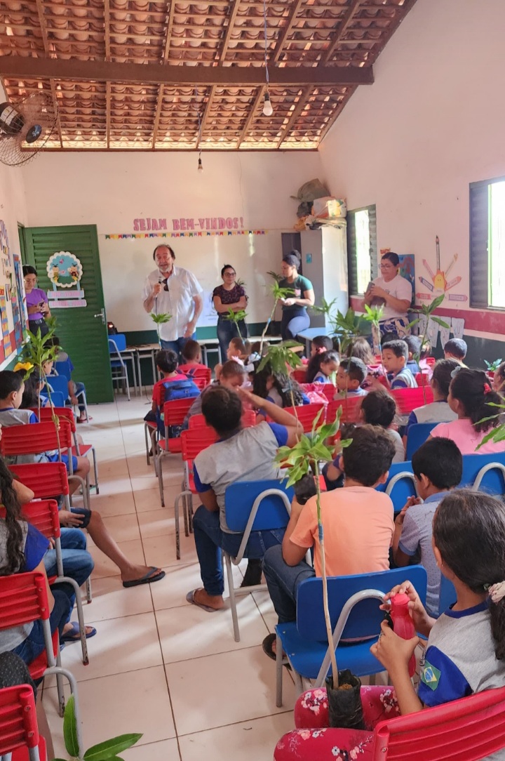 O Secretário primeiro fez uma palestra com os alunos explicando a importância das árvores e da natureza como um todo(Meio Ambiente). Falou sobre os cuidados que é preciso ter para as árvores crescerem sadias e produzirem bons frutos, as frutíferas. Na ocasião foram distribuídas mudas de plantas com os alunos e foi entregue coletores de resíduos para a escola, onde foi explicado o trabalho da coleta seletiva.