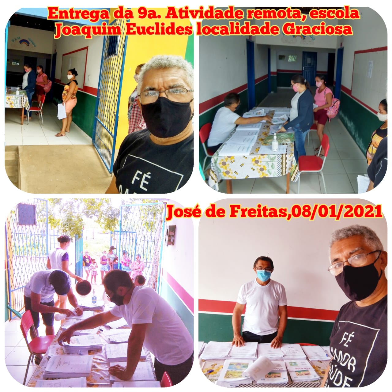 A Superintendente de Ensino Professora Conceição Ribeiro fez a distribuição do material de atividades junto a equipe de supervisão da SEMED na Escola Municipal Francisco Rodrigues do Nascimento na localidade Mocambo. A equipe SEMED esteve presente de 07:30 às 17:30 da sexta-feira do dia 08/01/21 com a entrega das atividades remotas, onde tudo transcorreu com muita tranquilidade.