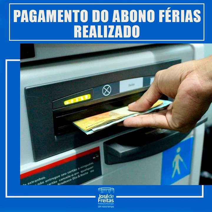 A Prefeitura de José de Freitas-PI realizou nesta quarta-feira 10 de julho de 2019, o pagamento referente ao abono de férias dos funcionários da Secretaria Municipal de Educação-SEMED, que legalmente é concedido no mês de julho. Tradicionalmente o pagamento era realizado no dia 15 de julho, porém a gestão resolveu antecipar o pagamento.