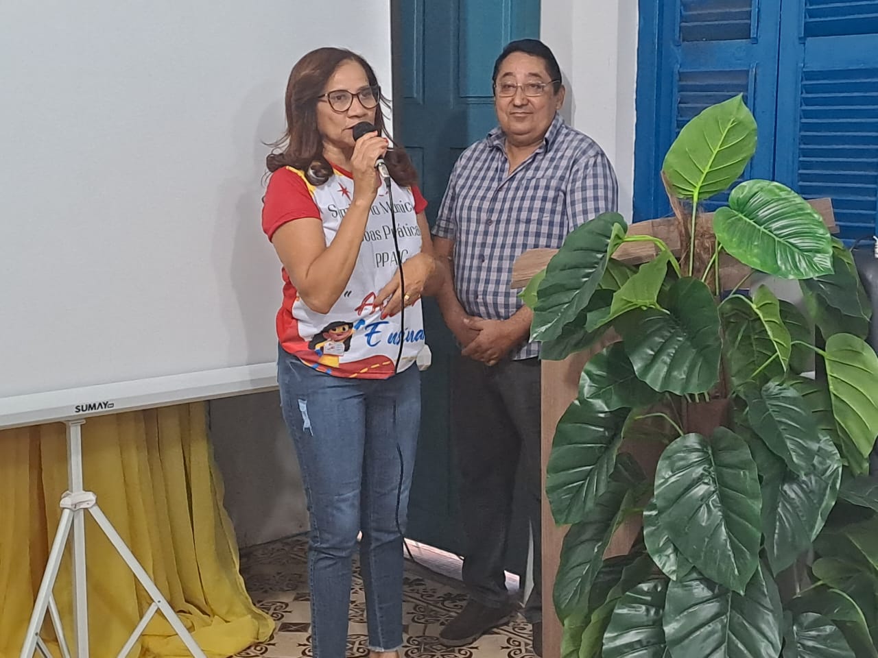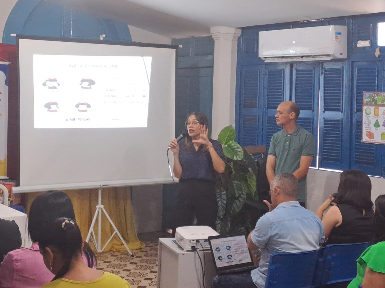 Os palestrantes Professora Carla e Professor Almir.