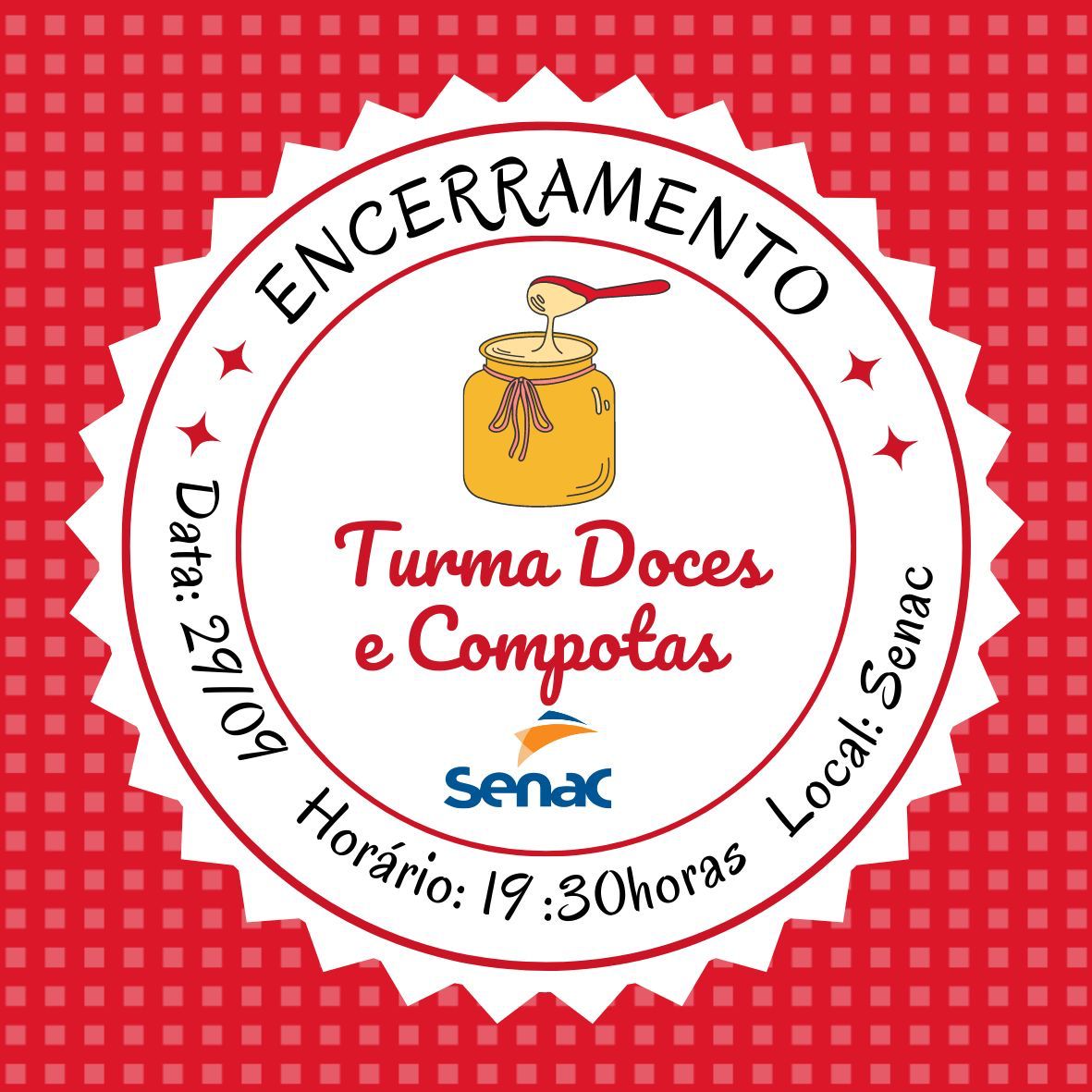 O curso de Doces e Compotas teve inicio dia 12 de setembro com encerramento dia 29 de setembro. Participaram do curso 15 pessoas, o qual teve como instrutor o professor Erik Vinicius, o curso teve uma carga horária de 40 horas dedicadas a produção de doces e compotas.