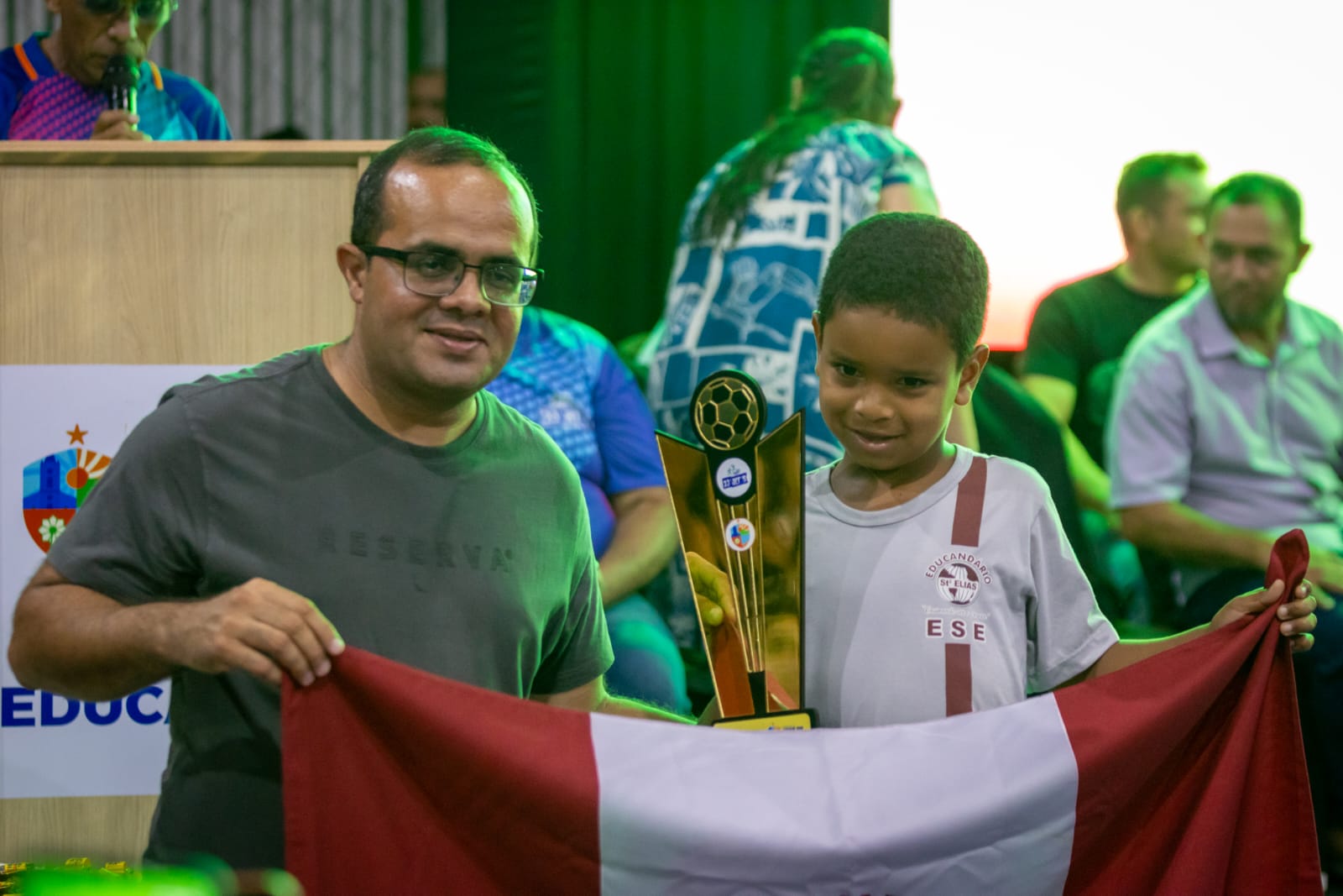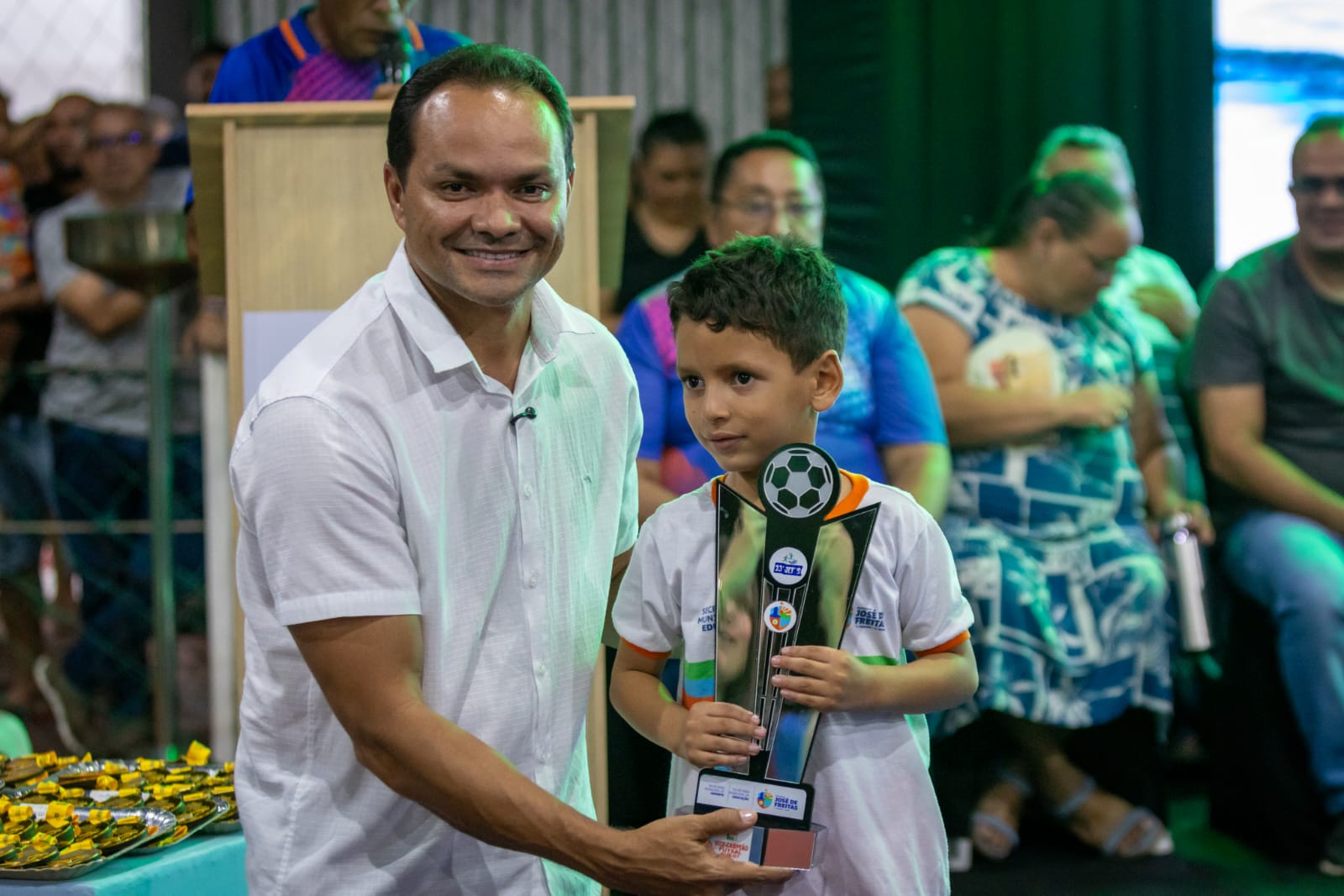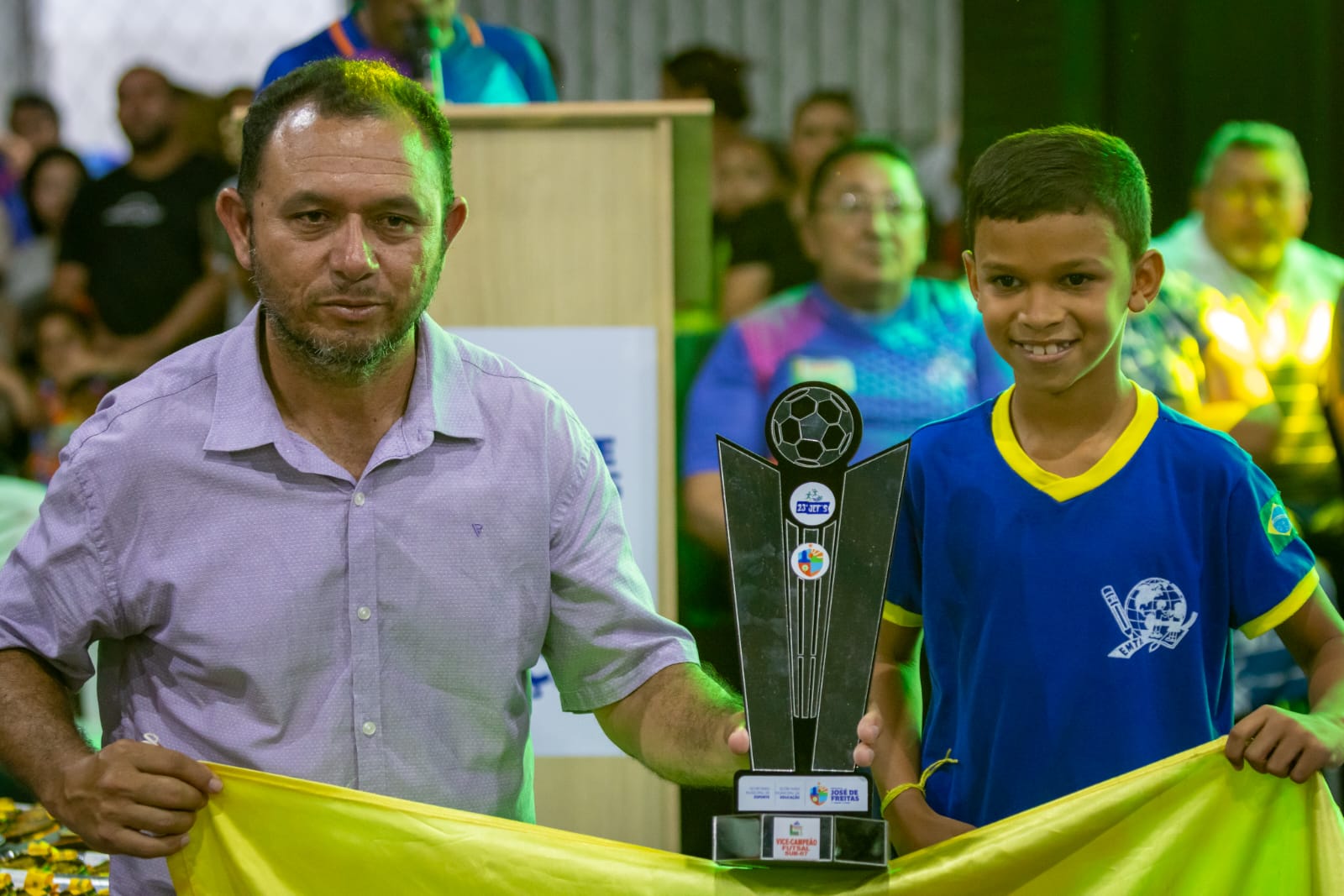 O organizador do evento, Edmilson Saraiva, juntamente com sua equipe e autoridades presentes, realizou a entrega dos troféus e medalhas às escolas e atletas vencedores, coroando o esforço, a dedicação e o espírito esportivo demonstrados ao longo das competições.
