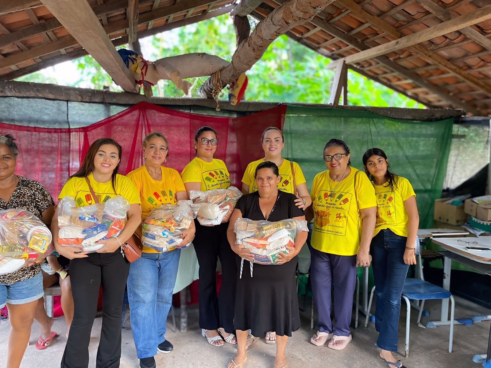 A ação é resultado da arrecadação de alimentos promovida durante o Desfile Solidário do Projeto É Dando Que Se Recebe, momento em que a comunidade abraçou a causa e demonstrou, com gestos concretos, o verdadeiro significado de empatia e amor ao próximo. Cada doação recebida foi cuidadosamente organizada pelos membros do grupo, que se dedicaram à separação e montagem das cestas, transformando os donativos em mantimentos essenciais para quem mais precisa.