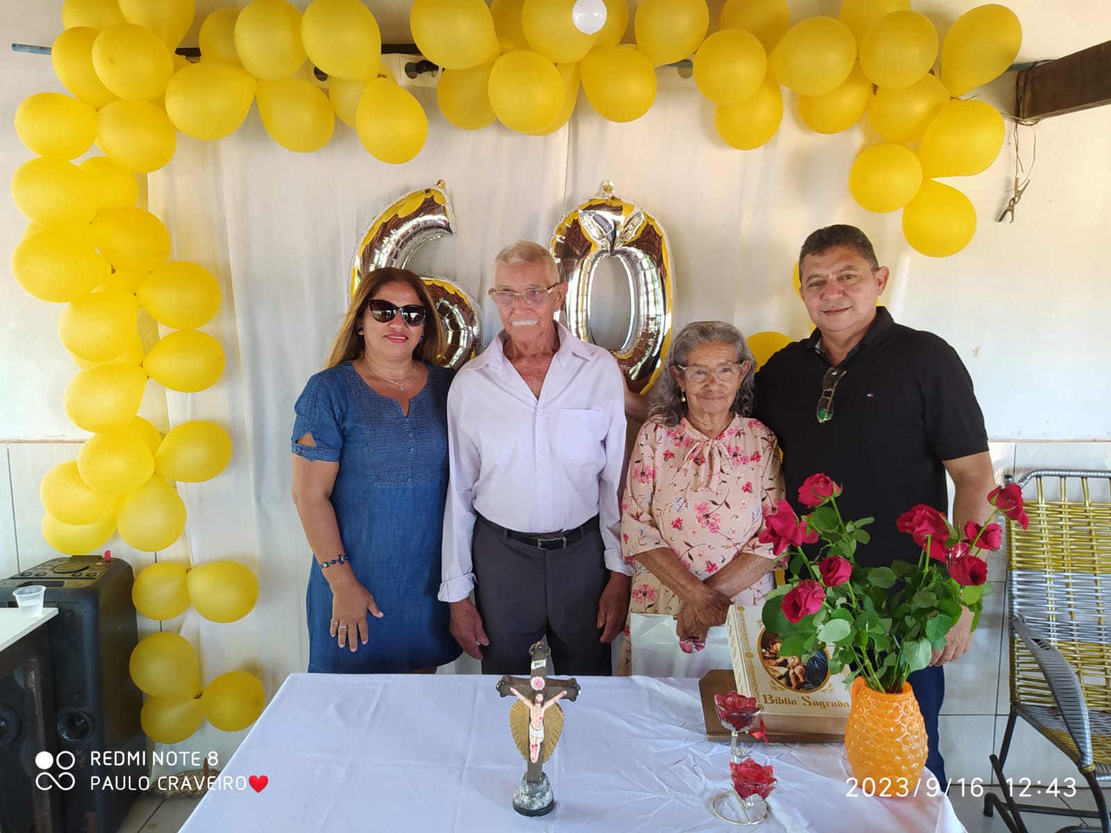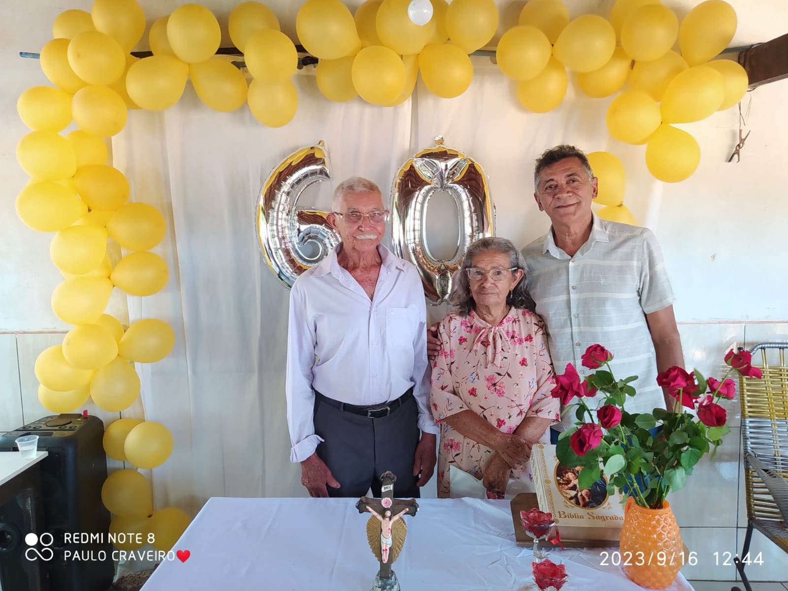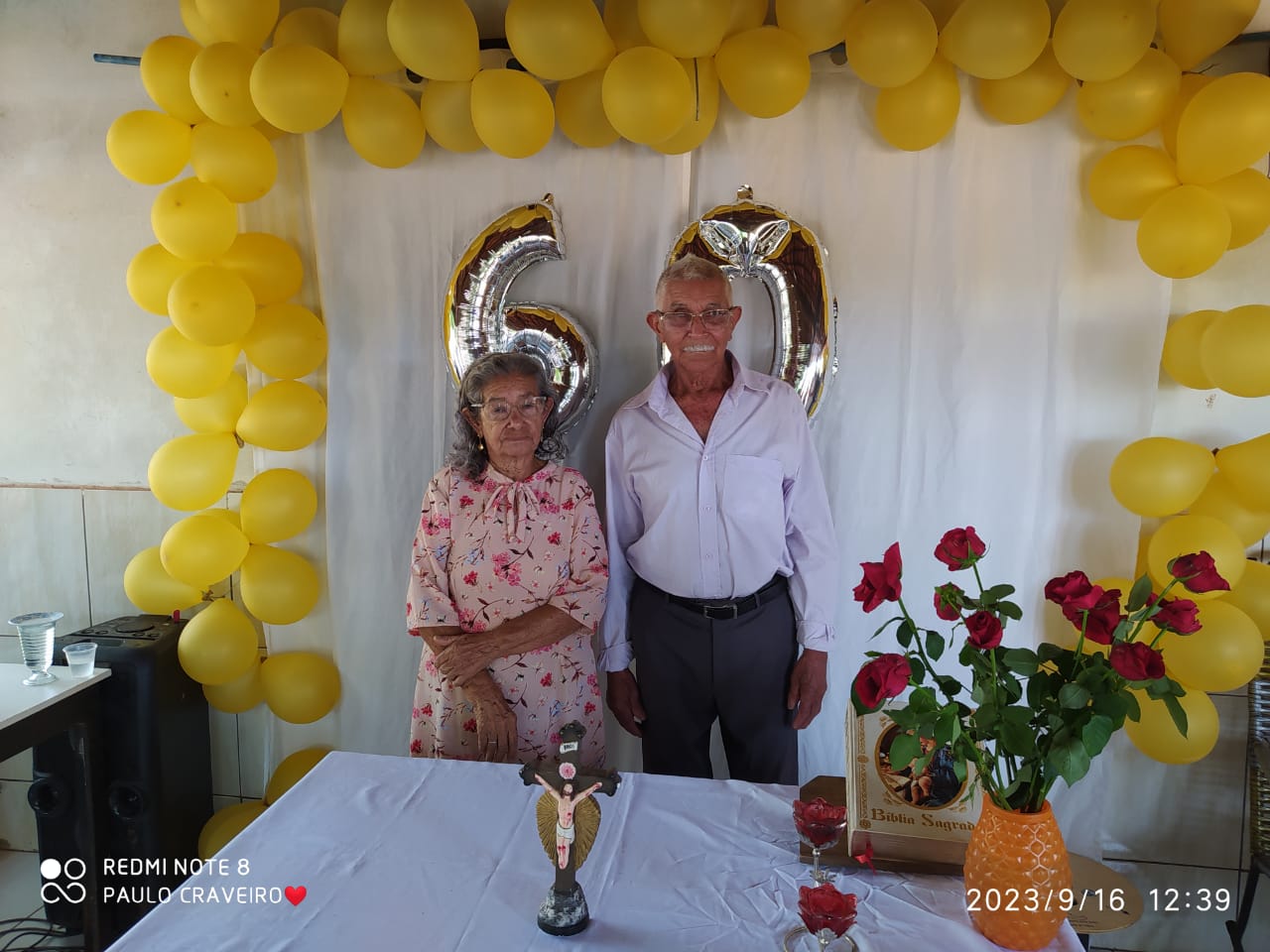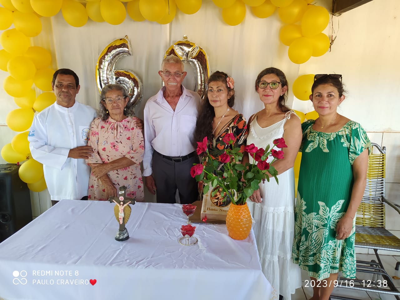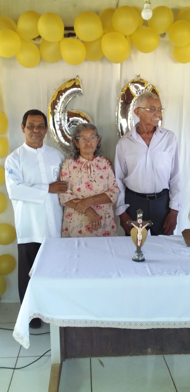 A Celebração dos 60 anos de casados de Sr. Antônio e Sra. Joana, as Bodas de Diamante, aconteceu na Comunidade Lagoa Seca, município de José de Freitas. O Pregador João de Deus do Assentamento São José fez uma linda homilia falando sobre o relacionamento perpétuo do casal.O evento organizado pelas filhas Deusimar, Dilma e Lili e do filho adotivo Antônio Francisco, com a participação de familiares e amigos.