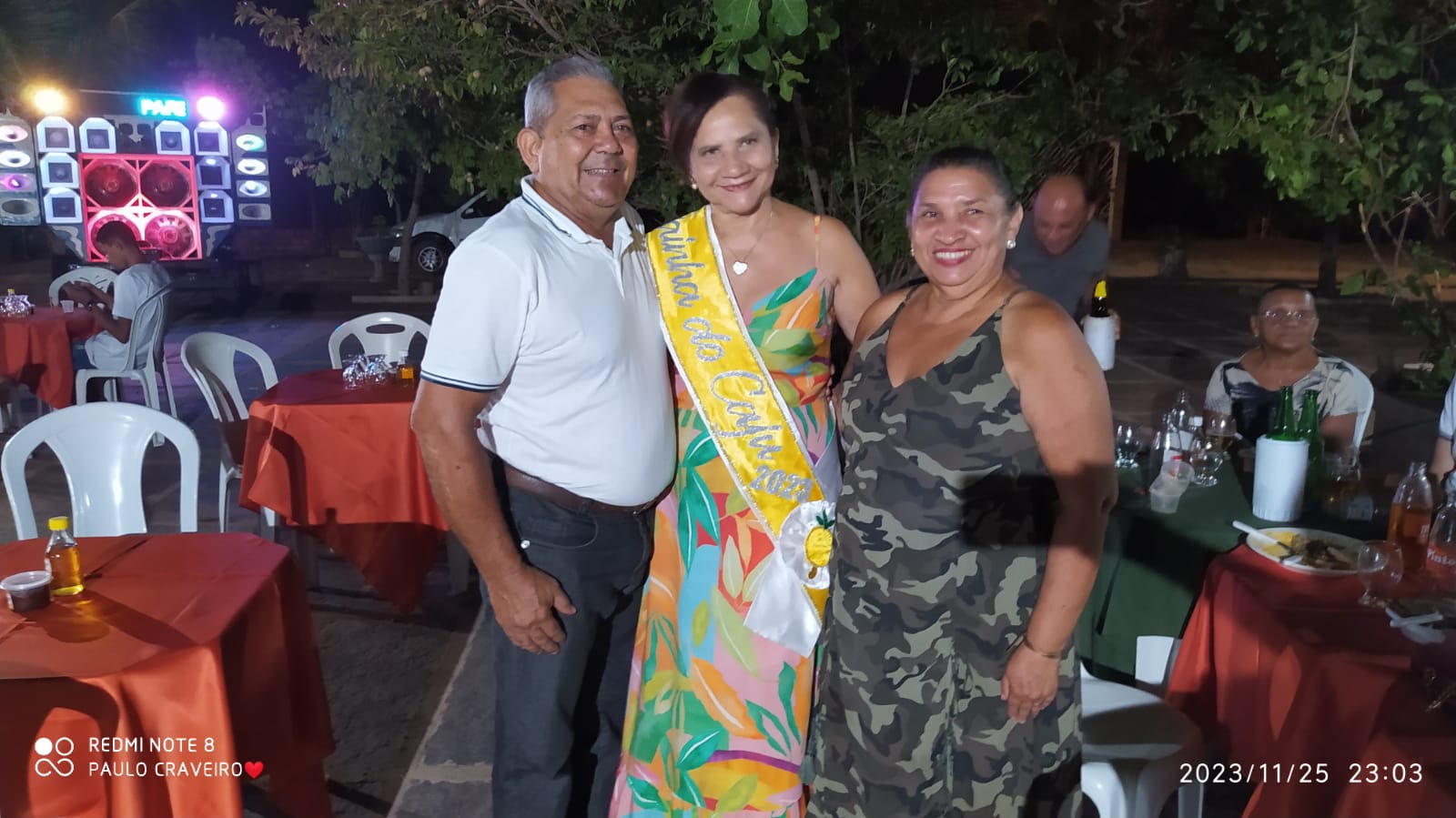 Entre muitas mulheres presentes, lindas e com um look apropriado foi escolhida a Professora Socorro Cruz como a Rainha do Caju. A eterna Rainha do Caju e proprietária do sitio, Luzia Pinto foi quem enfaixou a atual rainha Socorro Cruz.