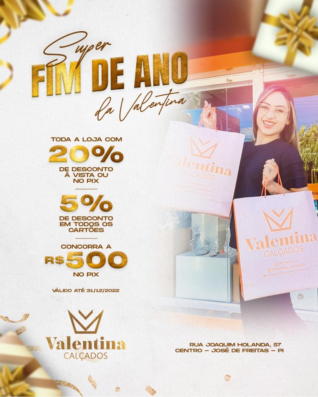 Com a chegada do fim de ano, a proprietária da Loja Valentina Calçados Larissa Cristina resolve fazer uma Super Promoção em todo seu estoque.
