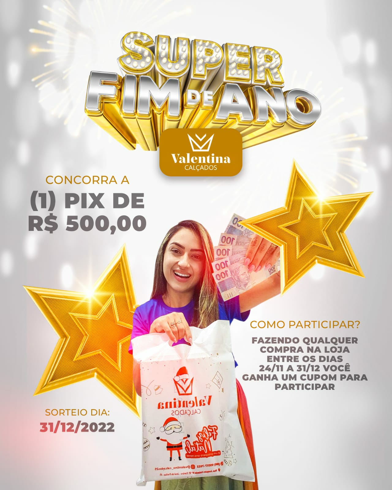 E você ainda irá concorrer a um PIX no valor de 500 reais, onde o sorteio acontecerá dia 31 de dezembro de 2022.