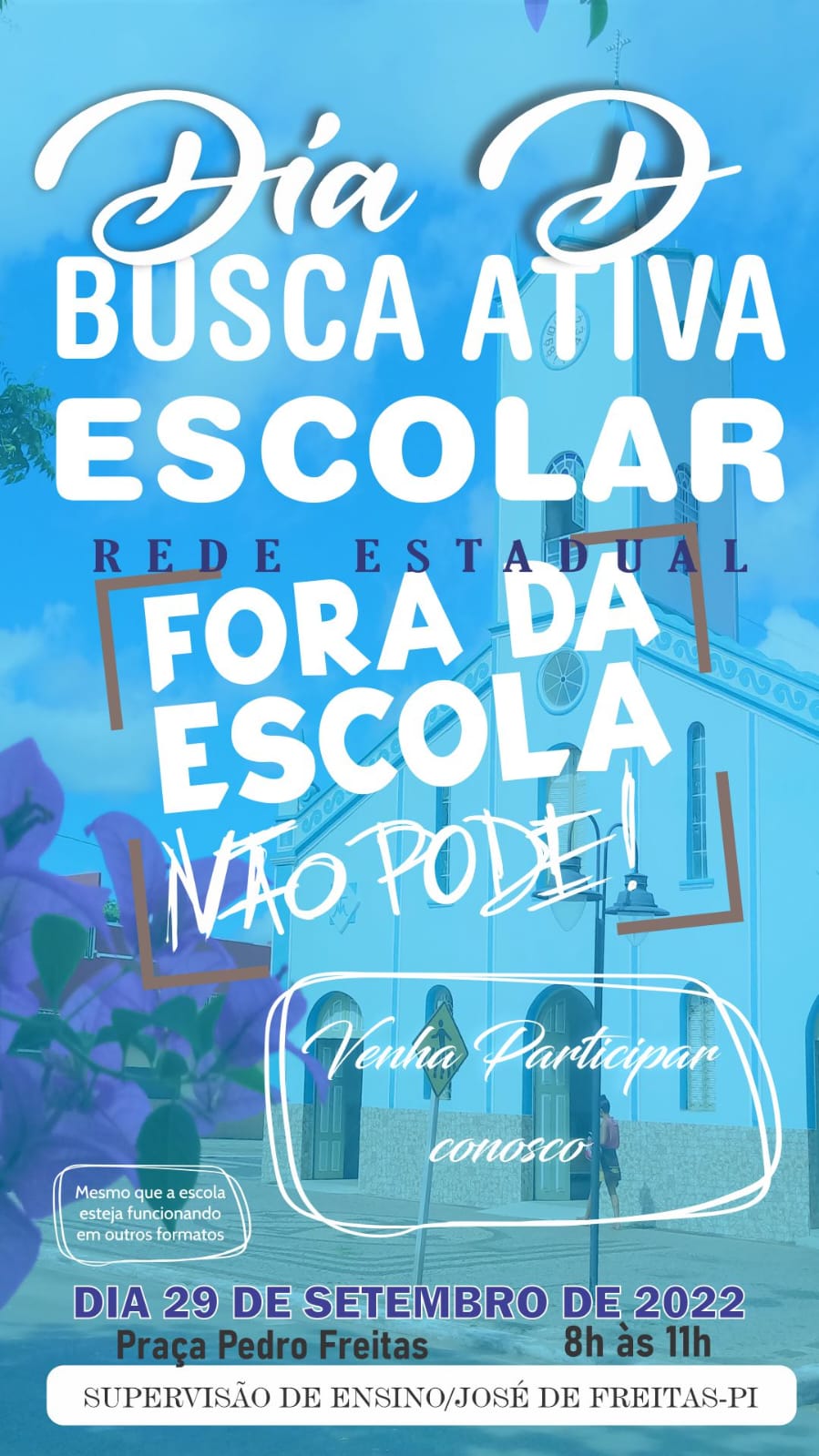 Neste dia 29 de setembro de 2022, a Superintendência Estadual de Educação na Cidade de José de Freitas-PI realizou o dia “D” da Busca Ativa Escolar na cidade. A ação envolveu escolas da rede estadual e municipal de ensino do município.