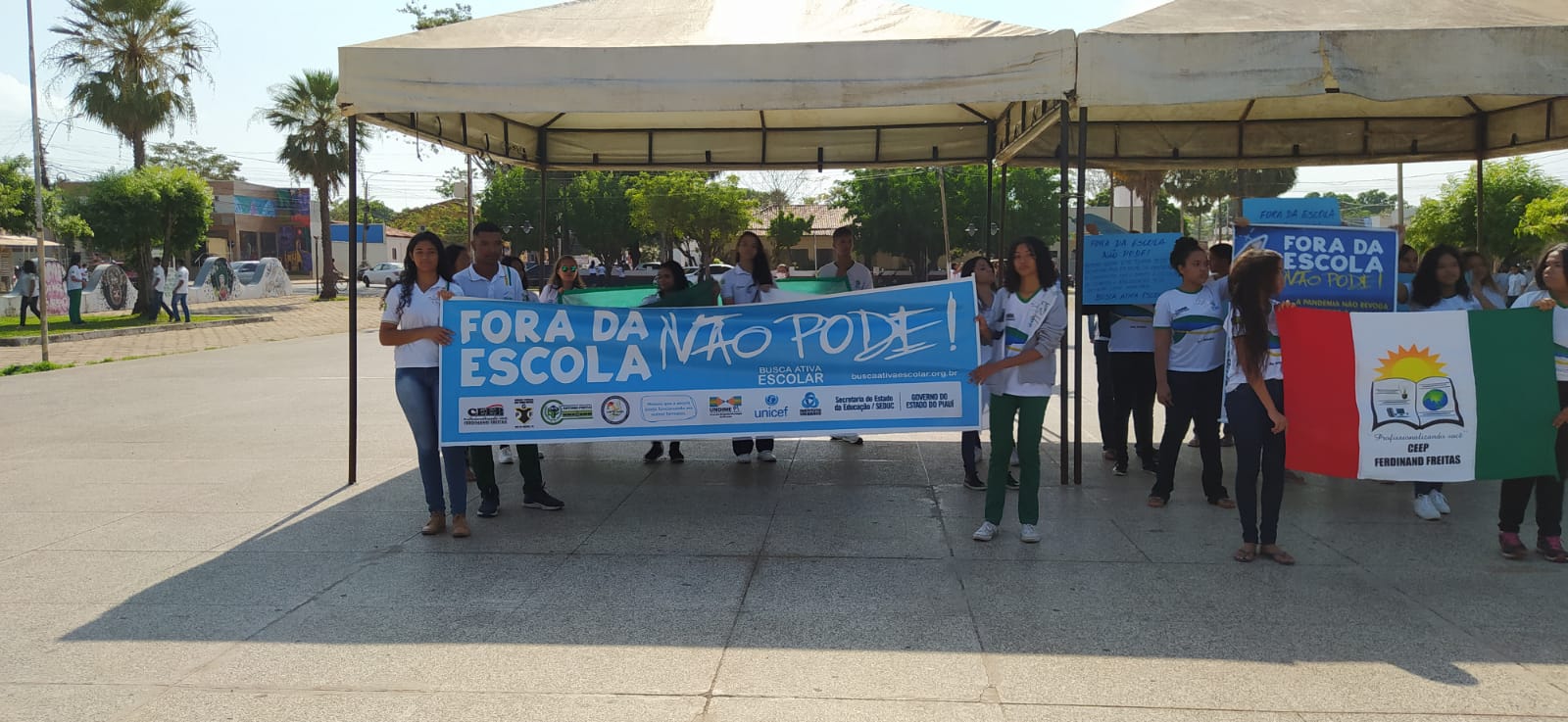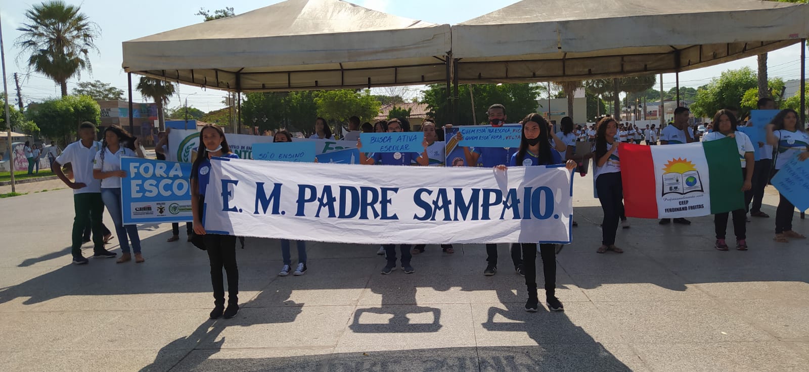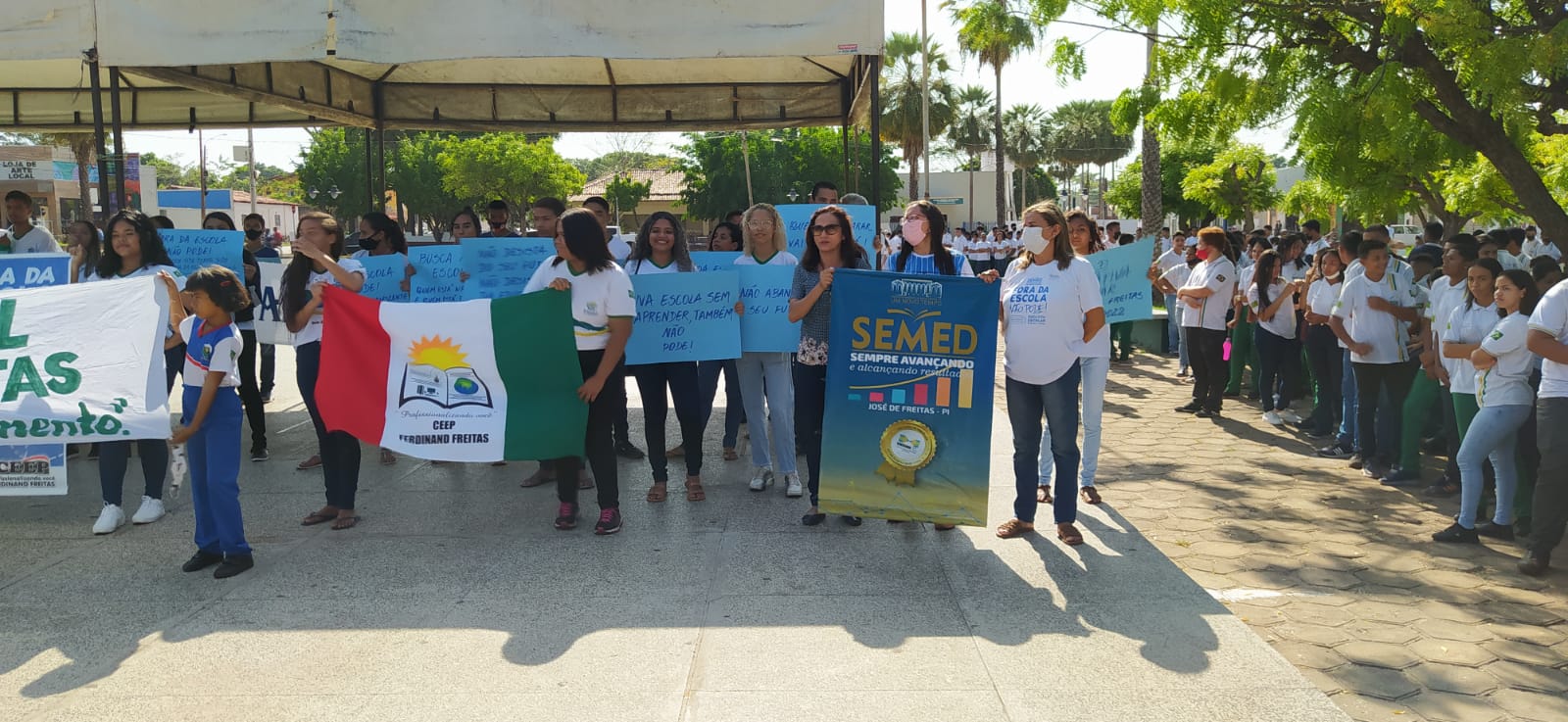 Após a caminhada com alunos das escolas do estado, CETI-Antônio Freitas, CETI-Ferdinad Freitas, Unidade Escolar Pedro Freitas, Escola Firmo Cunha e as escolas do município, Padre Sampaio, Carlota Freitas e técnicos da SEMED, houve uma concentração na Praça de Eventos Freitas Filho.