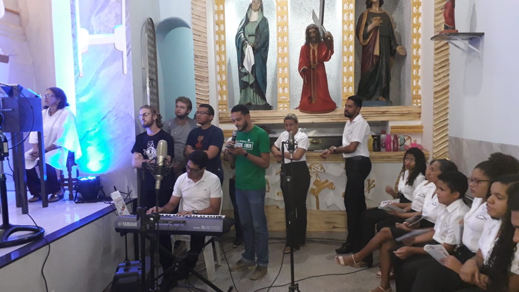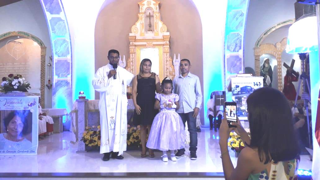 Laura Letícia apresentou uma homenagem ao Padre Gilcimar pela passagem de seus 16 anos de apostolado, que logo em seguida foi acompanhado por uma bela melodia apresentado pelo irmão Raul Felipe.