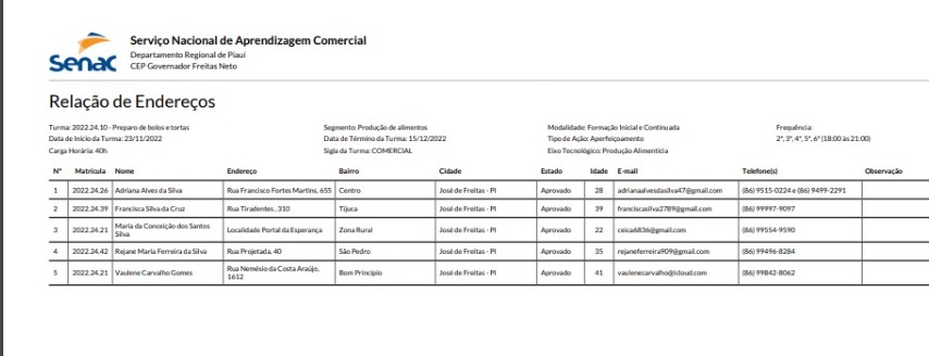 OBS: O SENAC José de Freitas já está com uma nova turma com matrículas abertas para 2023.