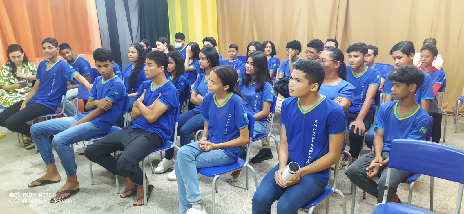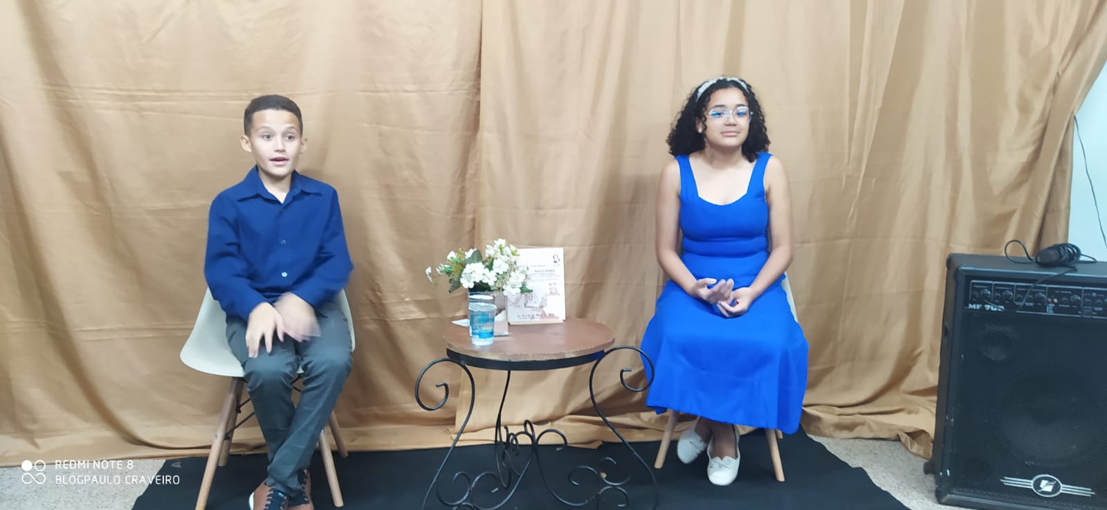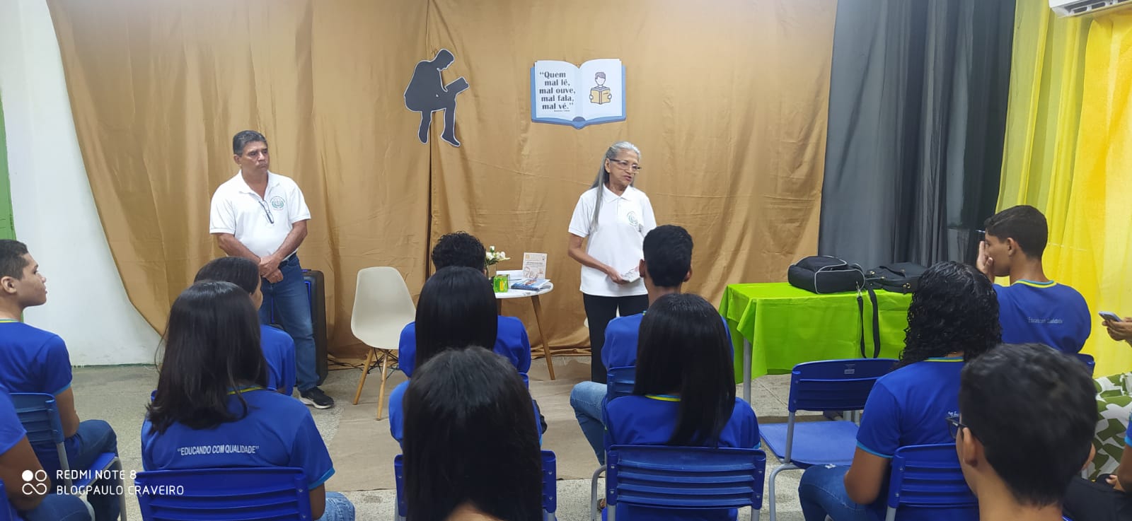 O estudante Francisco Abner, apresentou a Importância da Leitura para o Desenvolvimento Humano e teve como mediadora a estudante Alícia Zigele.