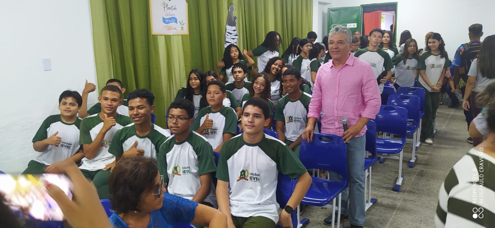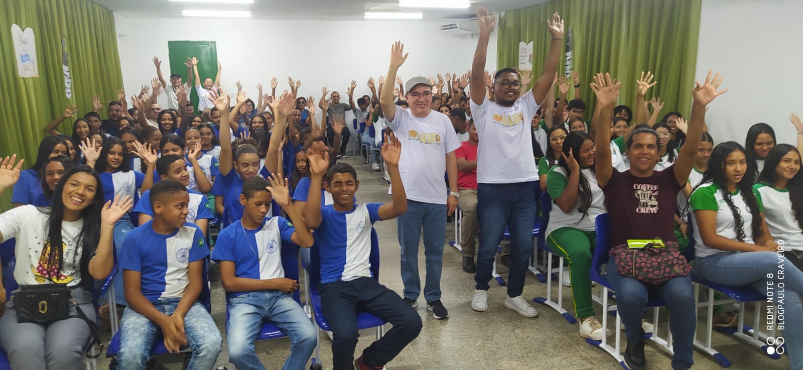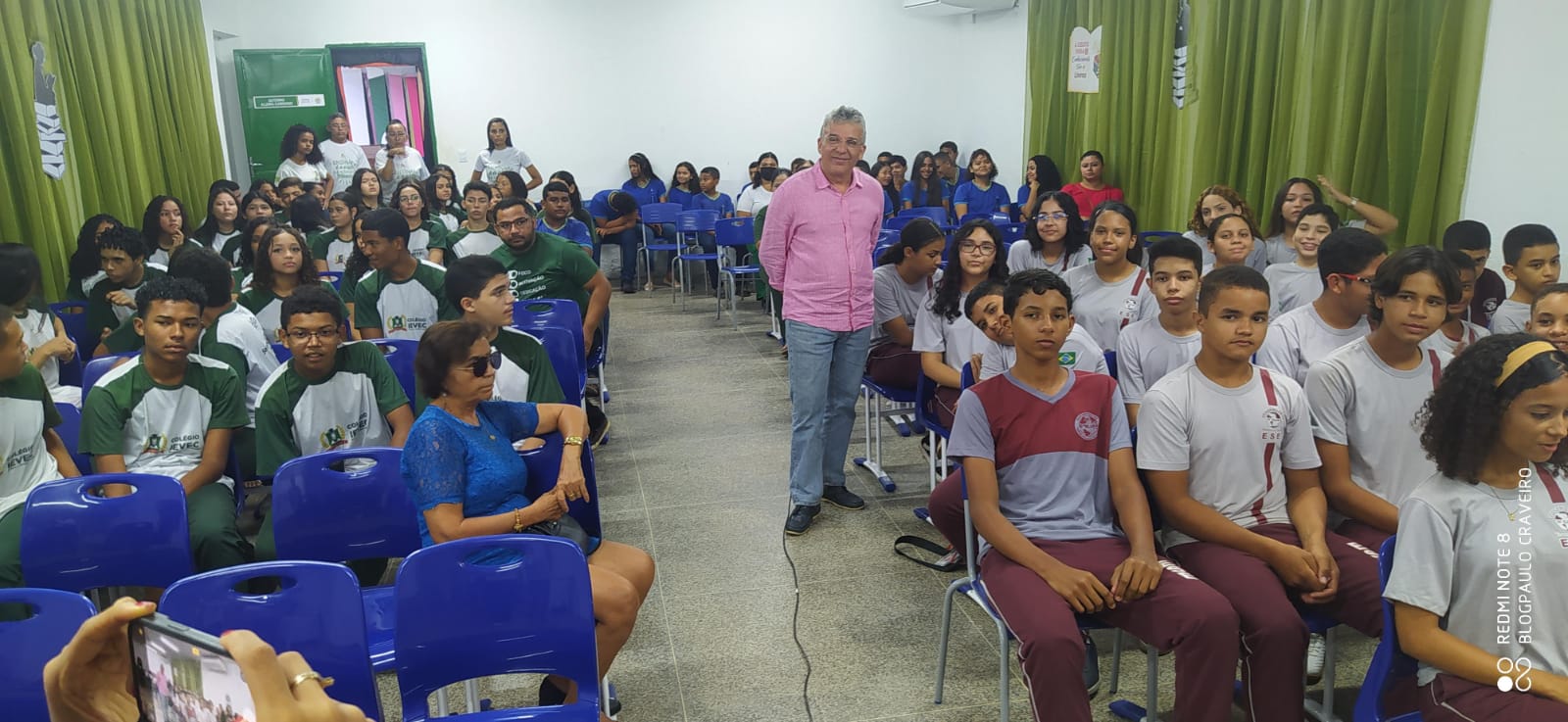 O estudante Francisco Abner, apresentou a Importância da Leitura para o Desenvolvimento Humano e teve como mediadora a estudante Alícia Zigele.