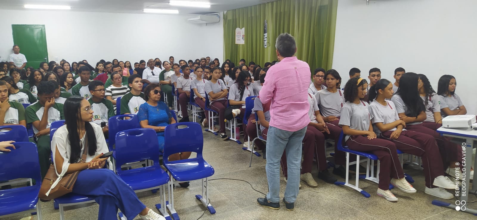 Palestra com o escritor Wellington Soares, apresentou: O Direito à Literatura e teve como mediador Professor Mestre Erimar Rocha
