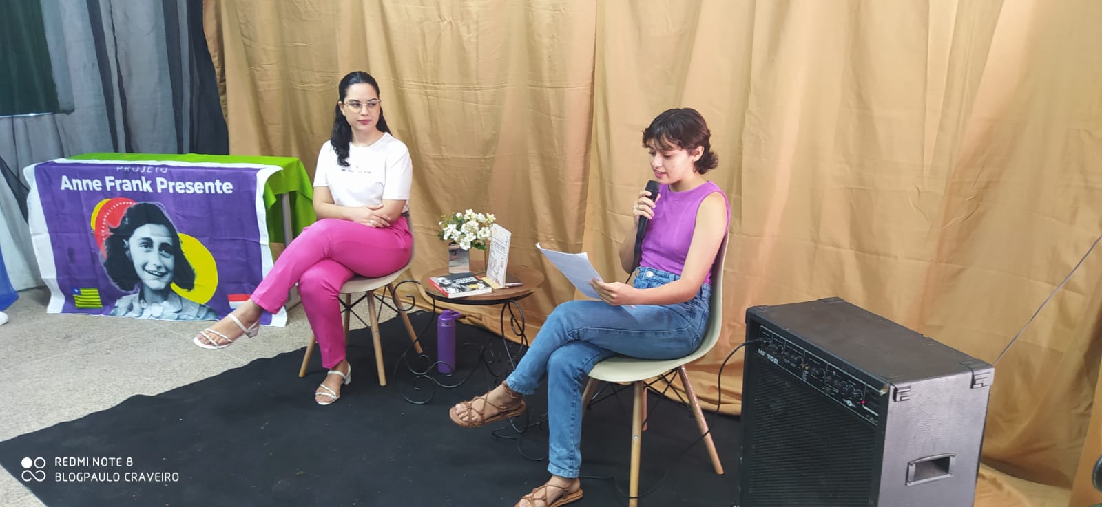 A estudante Manuela Ximenes apresentou o tema: Anne Frank uma História que Transforma Vidas e a mediadora foi a estudante Antônia Larissa.