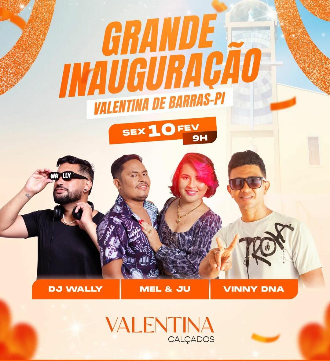 Neste dia 10 de fevereiro de 2023 Larissa Cristina proprietária da Valentina Calçados estará inaugurando sua primeira filial na Cidade de Barras. Uma equipe foi formada para receber toda clientela de Barras e região e a loja está cheia de produtos super atualizados com preços de inauguração e competitivos.