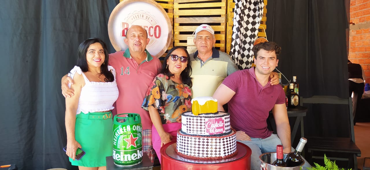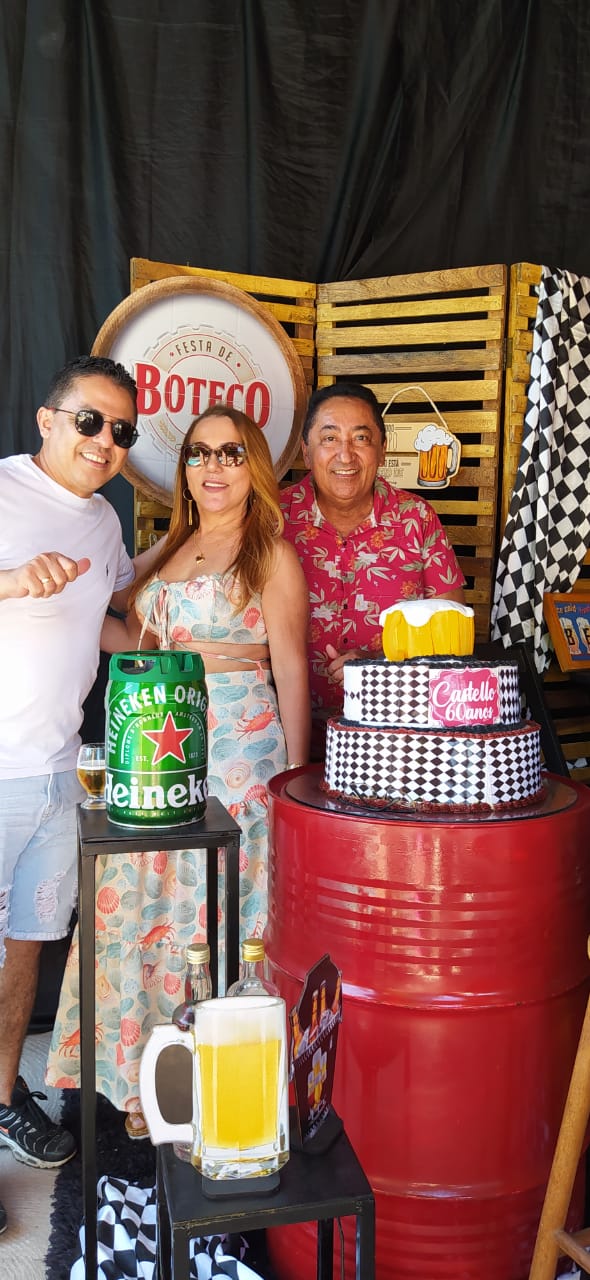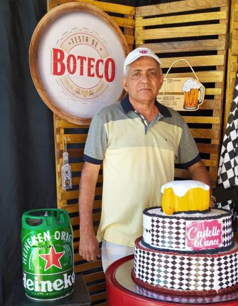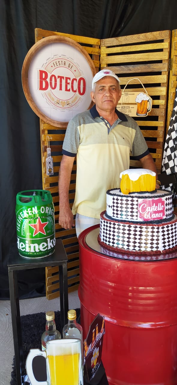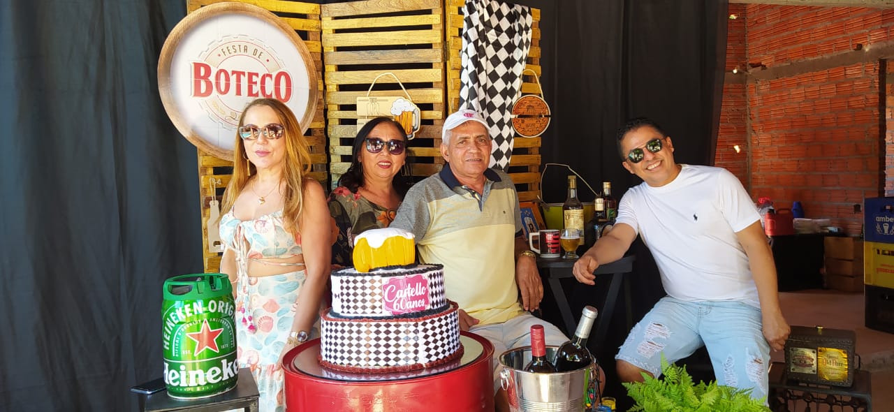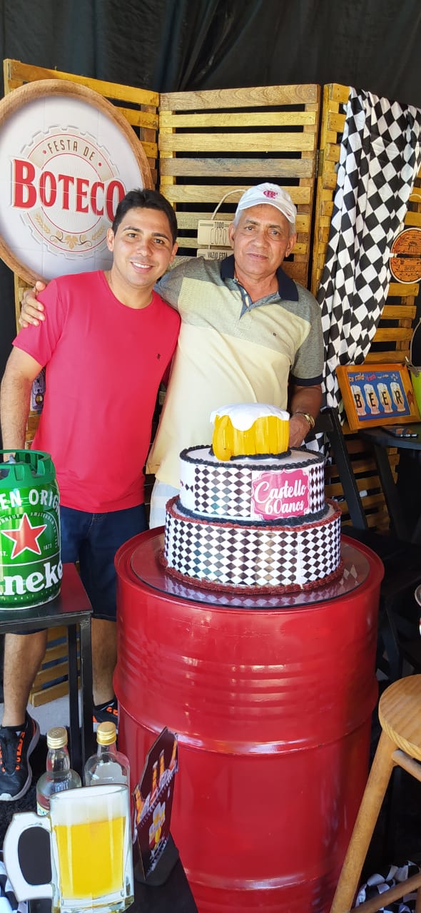 Os filhos Renan e Macel lhe deram total apoio e a cunhada Socorrinha Cunha que tem o Know-how em decoração e gastronomia fez sua parte organizando o evento e dando o título “Festa de Boteco 60 anos de Castelo”. Empresa Socorrinha Cunha Cerimonial e Eventos.