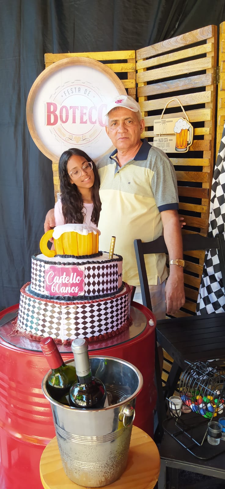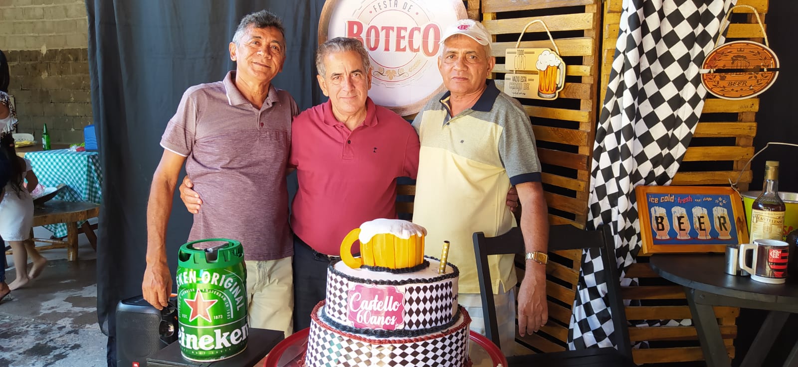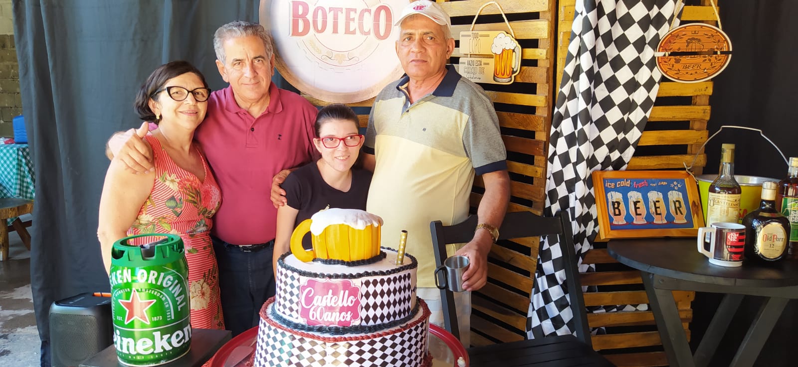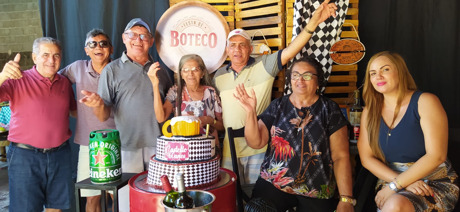 Os filhos Renan e Macel lhe deram total apoio e a cunhada Socorrinha Cunha que tem o Know-how em decoração e gastronomia fez sua parte organizando o evento e dando o título “Festa de Boteco 60 anos de Castelo”. Empresa Socorrinha Cunha Cerimonial e Eventos.