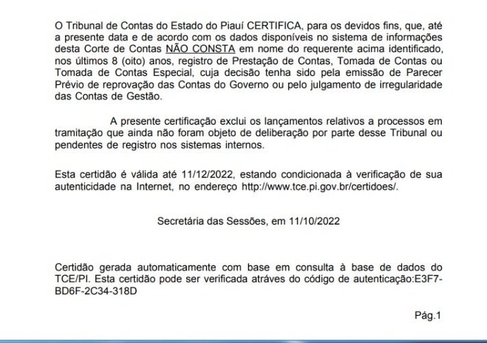 Documento Expedido Pelo Tribunal de Contas do Estado do Piauí