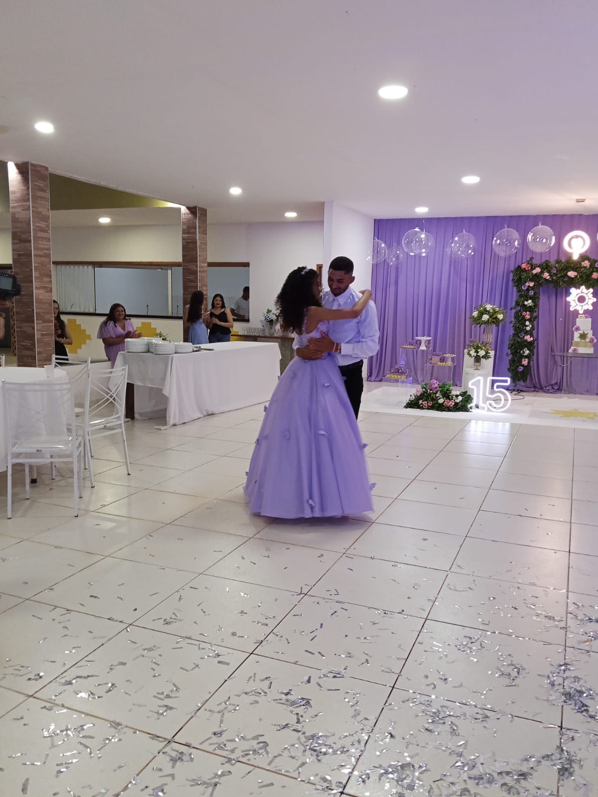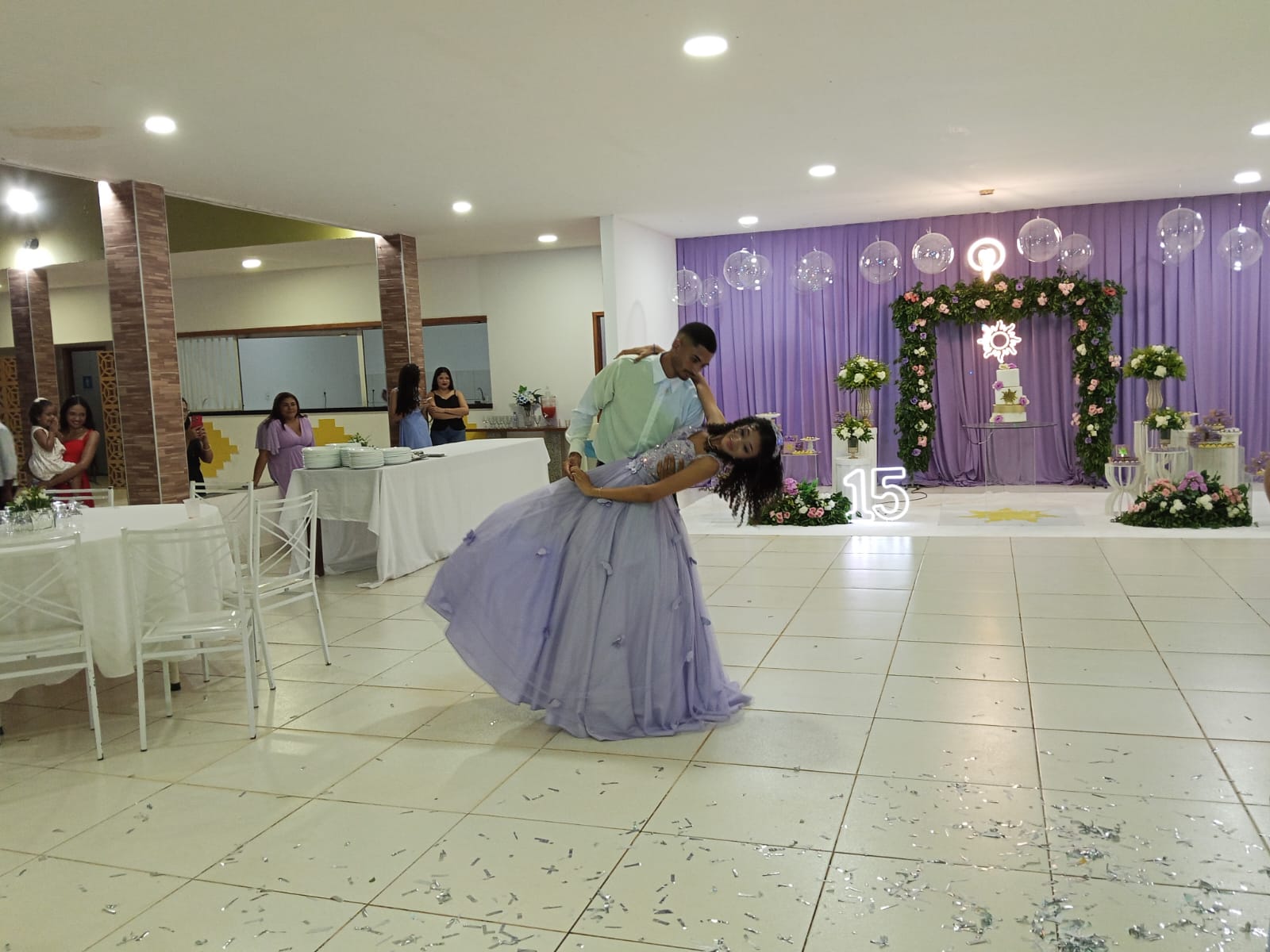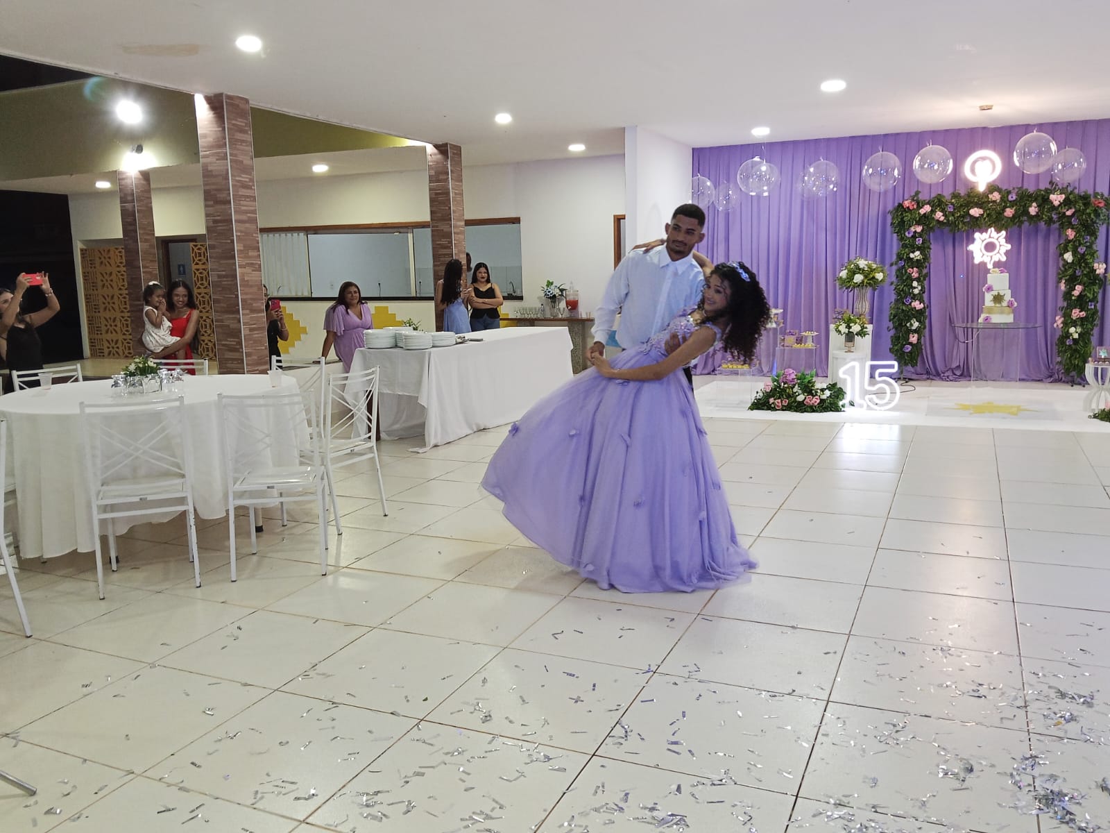 Entre tantos instantes inesquecíveis, o baile da valsa foi, sem dúvida, o mais marcante. Delicada, confiante e radiante, Viviane dançou com o pai, com os familiares, com amigos e com seu príncipe, em passos que pareciam desenhar no ar a poesia da juventude. Foi um momento em que o coração falou mais alto, em que cada gesto foi carregado de significado e emoção.